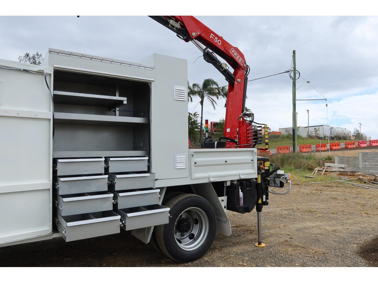 Fitted with a Swiftco Truck Bodies SERVICE BODY inc;