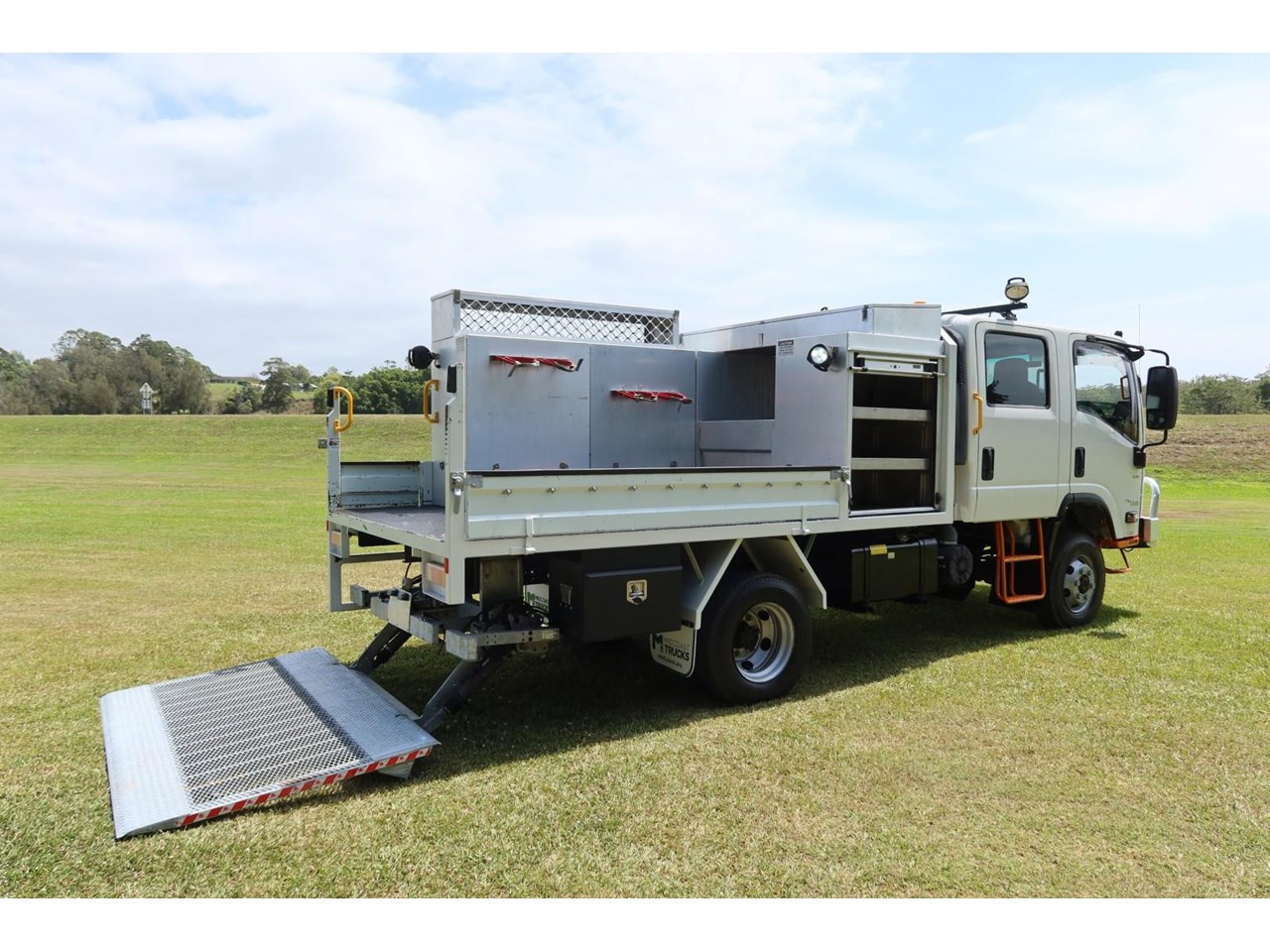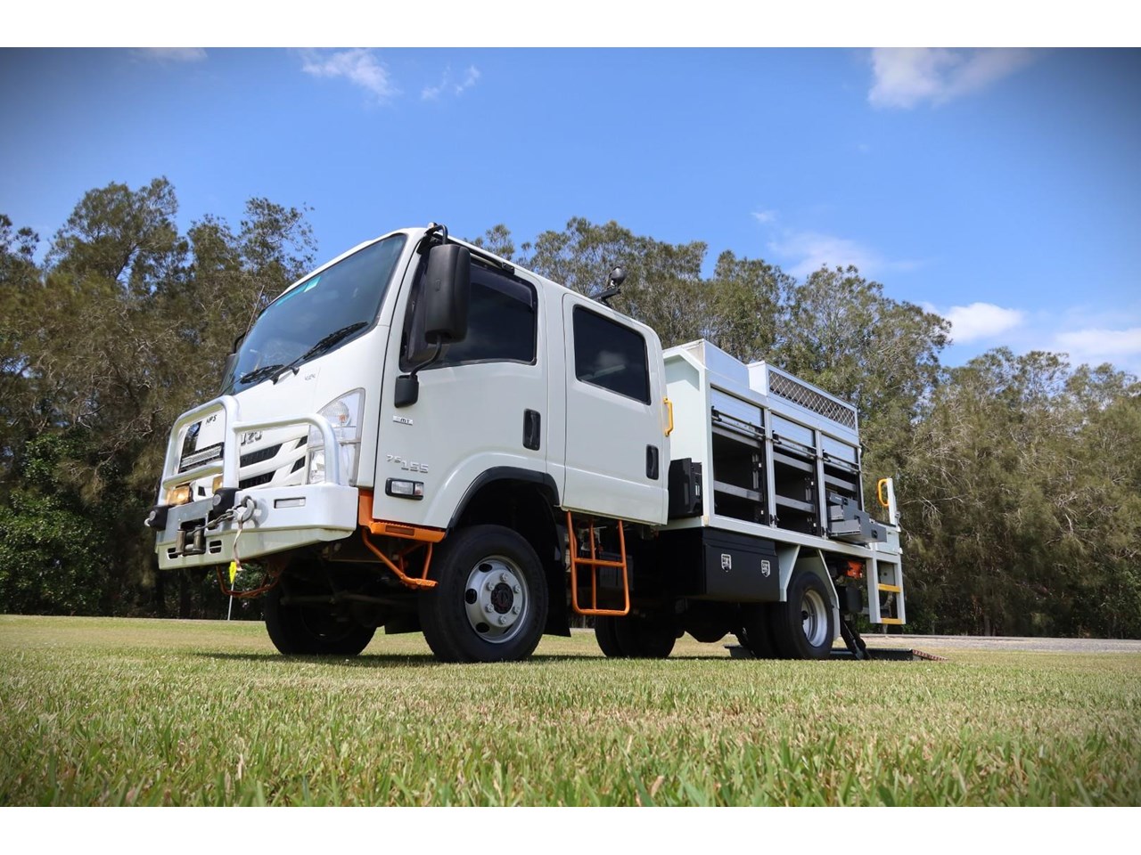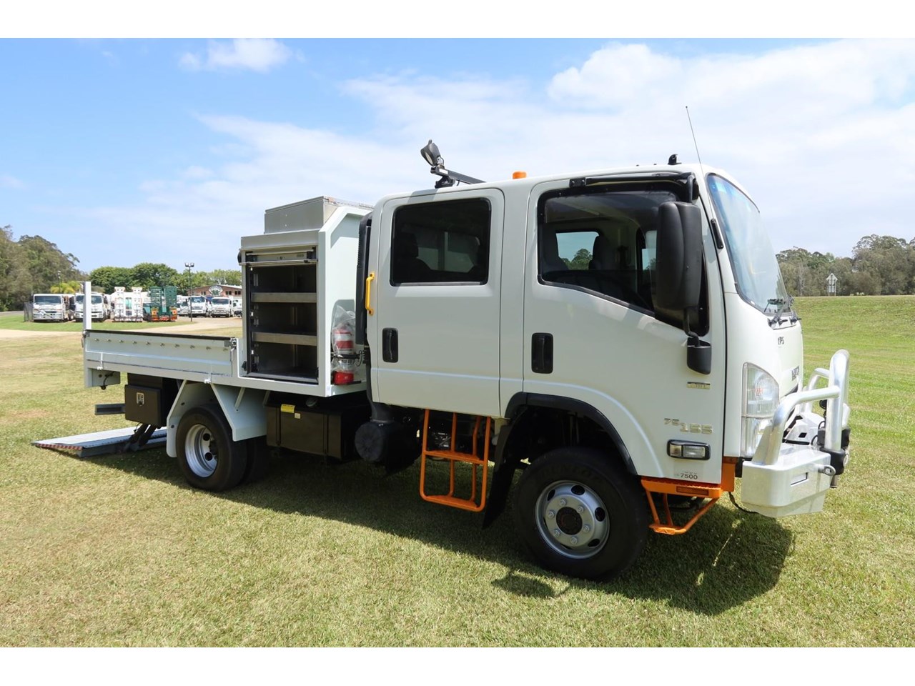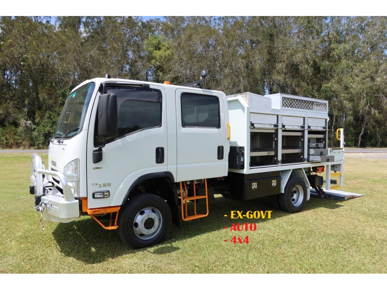1 x only used 06 / 2019 Isuzu NPS 75-155 4x4 (4WD) Crew Cab (Dual Cab) AMT 5.2 litre, turbo / intercooled, 155hp, 5 speed Automated Manual Transmission (AMT / AUTO / AUTOMATIC) inc air conditioning, an alloy bullbar inc integrated Warn M15 winch, driving lights, L.E.D light bar, plastic weather shields (front), handbrake alarm, rubber floor mats (front).