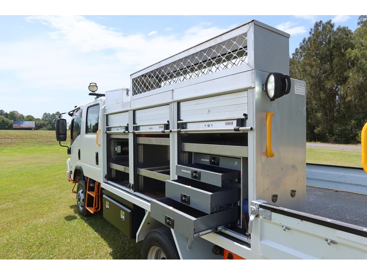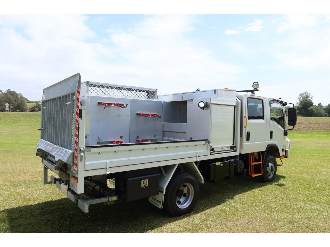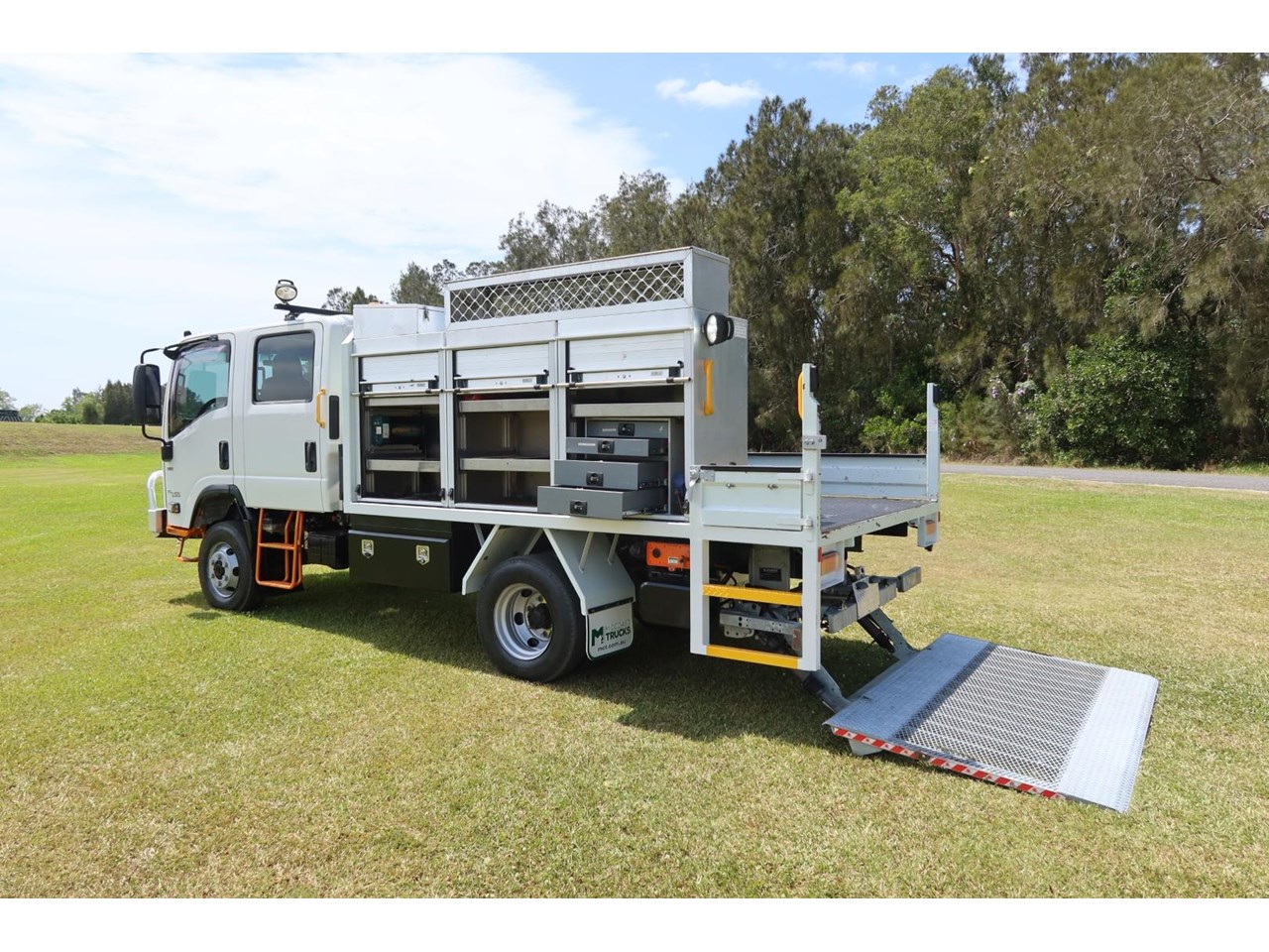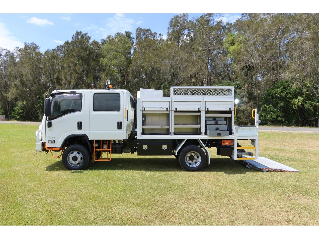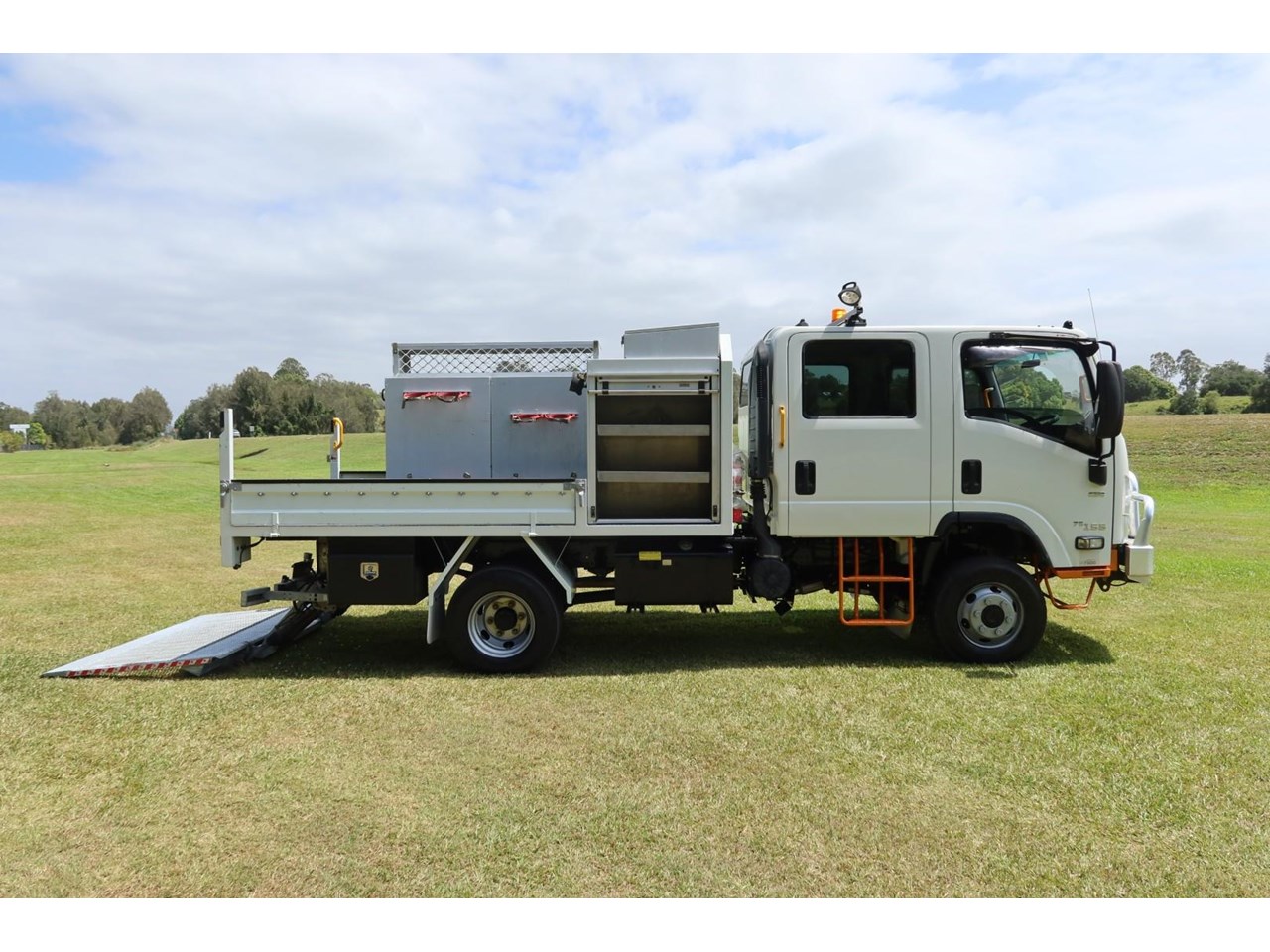 1 x only used 06 / 2019 Isuzu NPS 75-155 4x4 (4WD) Crew Cab (Dual Cab) AMT 5.2 litre, turbo / intercooled, 155hp, 5 speed Automated Manual Transmission (AMT / AUTO / AUTOMATIC) inc air conditioning, an alloy bullbar inc integrated Warn M15 winch, driving lights, L.E.D light bar, plastic weather shields (front), handbrake alarm, rubber floor mats (front).