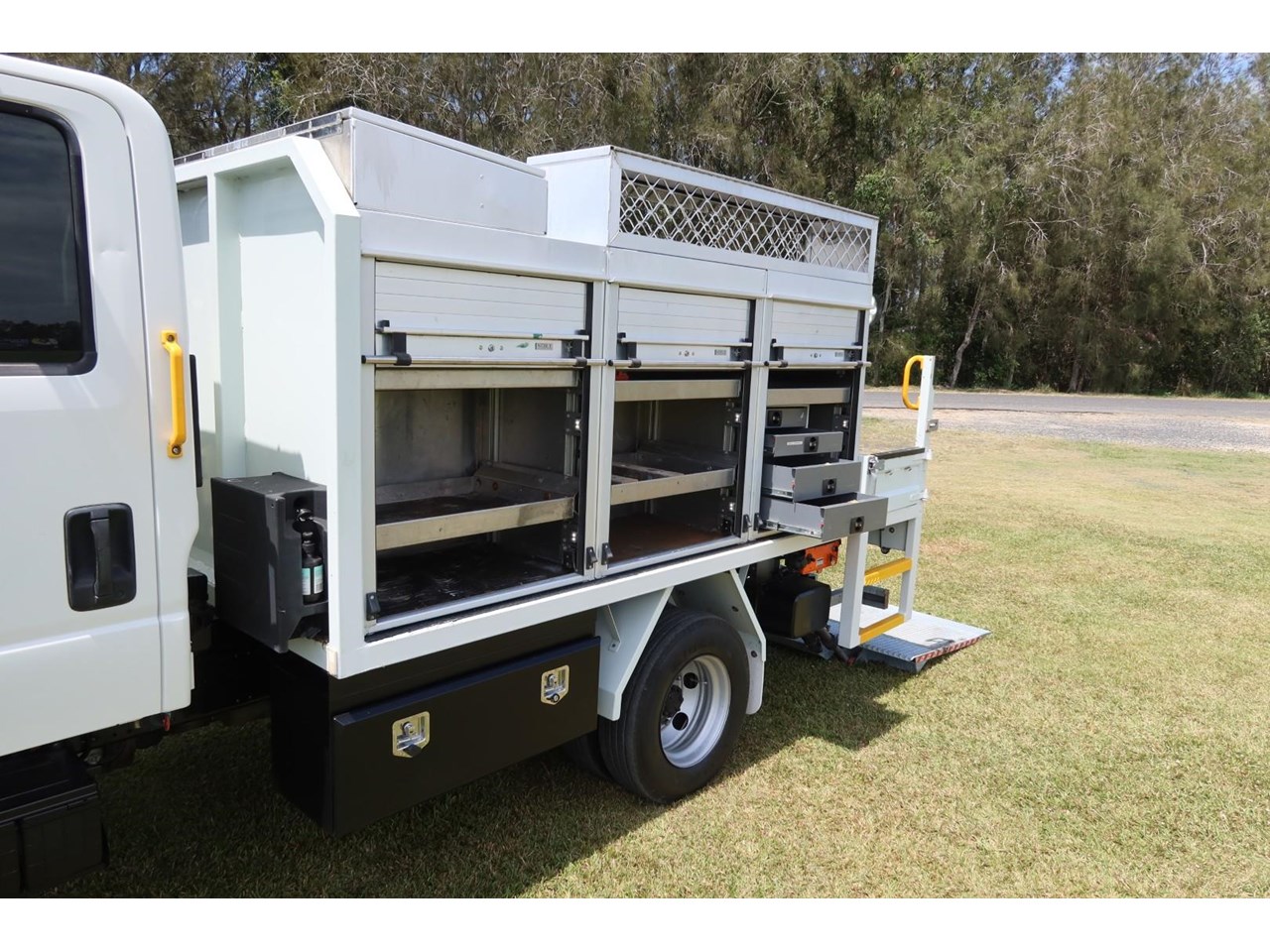 Fitted with a 2019 Alphatex SERVICE BODY (Overall approx 3.5m L x 2.23m W) inc;