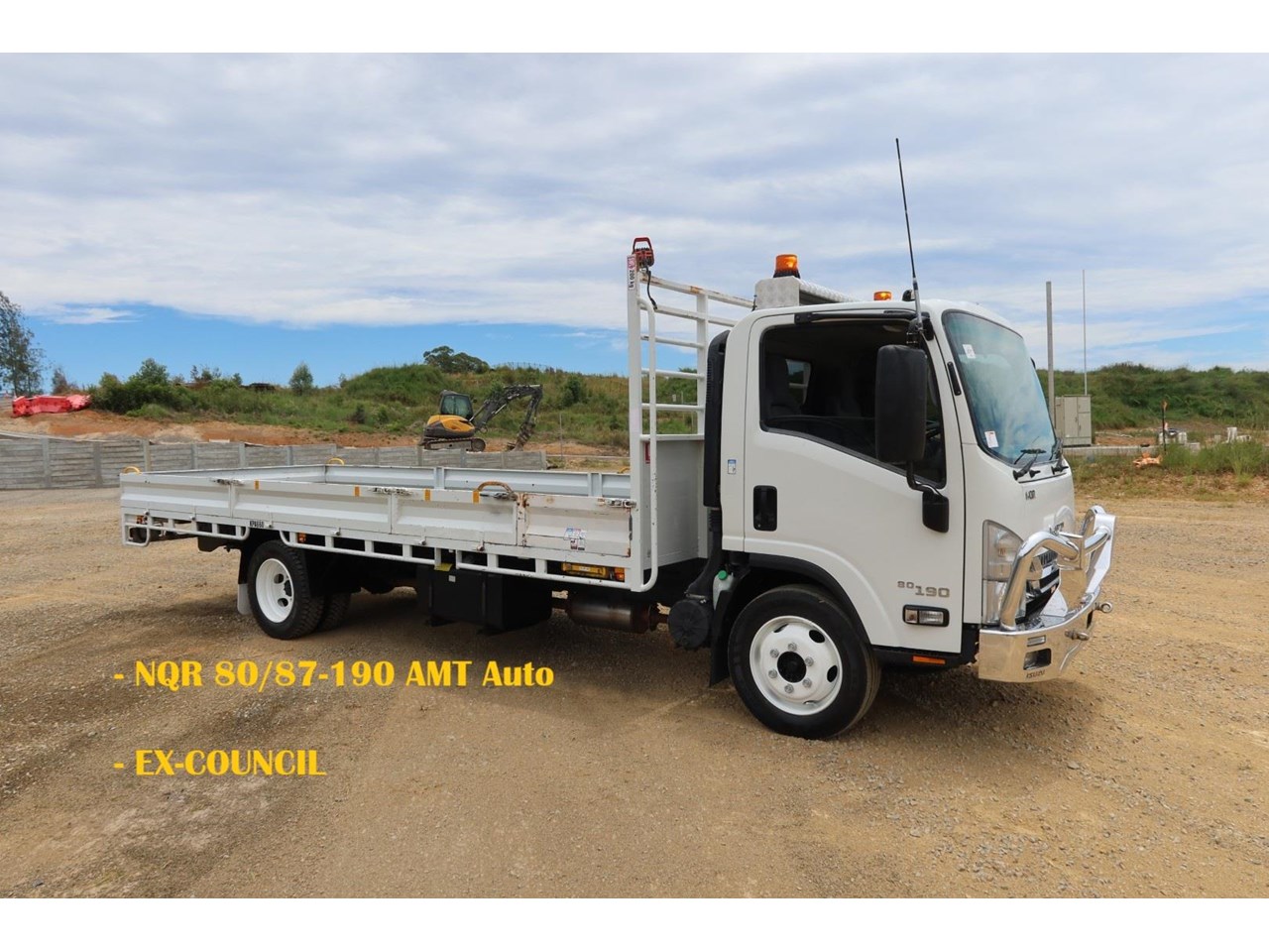 1 x only used 12 / 2019 Isuzu NQR 80/87-190 LWB AMT 5.2 litre, turbo / intercooled, 190hp, 6 speed Automated Manual Transmission (AMT / AUTO / AUTOMATIC) inc air conditioning, an alloy bullbar and a UHF radio.