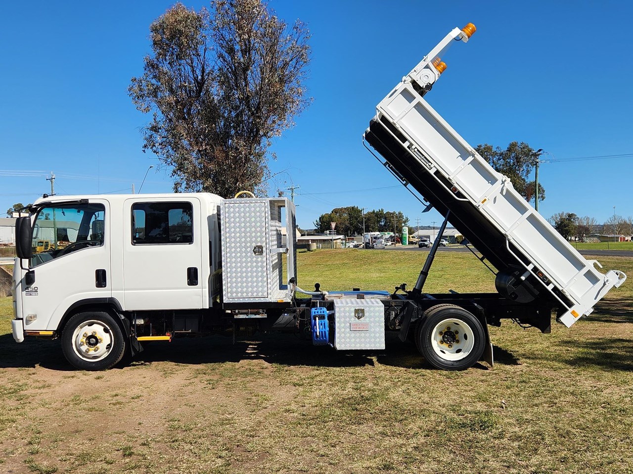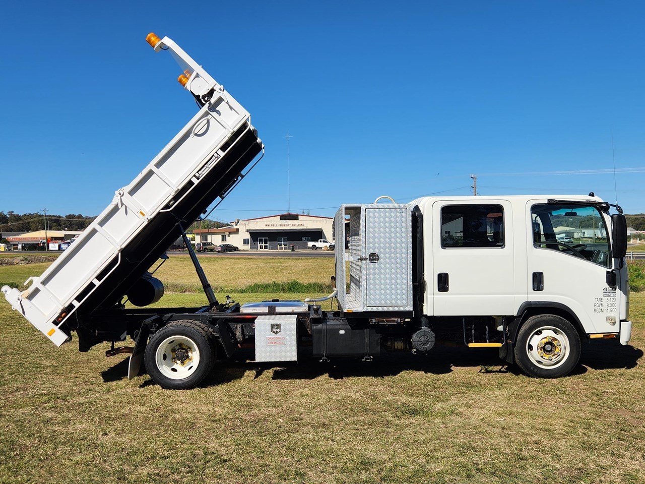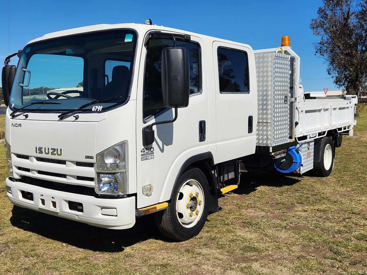2010 Isuzu NQR450 Crew 4x2 Dualcab PTO Tipper. Ex Council with only 180,675 Kms. 7 Seats ( We currently have over 20 Ex Council Tippers in stock ) Sitec 185HP 5.2 Litre Intercooled Turbo Diesel,6 Speed Manual Transmission Air Conditioning,Towbar with Pintal Hitch,Electric Trailer Brakes & Reversing Camera Fitted with Steel PTO Tipper Body with Underbody Hoist,4 x Separate Dropsides & 2 Way Swing Tailgate Windback Tarp,Dual Underbody Toolboxes,Foldout Step,Dual Revolving Lights Water Tank under Front of Body with McNaught Hose Reel,Rear Water Tank with Hand Wash Station Large Toolbox Behind Cab L-2255 x W-825 x H-600 without cage and 1270 with cage Tipper Body L-3520 x W-2255. Height of Sides-385 GVM 8700. GCM 12200. Tare 5120. Wheelbase 4460. Sold fully serviced with NSW or QLD Roadworthy Price includes GST & Tax Invoice Competitive finance available Delivery arranged to any state Independent inspections welcome Other similar spec Council Tippers in stock including Isuzu NPR400,NPR300,NPR275,NPR250,NPR200,NNR200,NLR200,NLS45/150 AWD Hino Dutro 300 Series UD Mitsubishi Fuso Canter 4x2 & 4x4 Single Cab & Crew Cab Tipper,Tipping Tray,Traytop,Cab/Chassis,Service Body,Cranetruck,Beavertail,EWP,Curtainside,Refrigerated Pantech,Water Trucks & Fire Trucks Ex Govt,Council,Forestry,National Parks,SES,Rescue Squad,Fire & Rescue Service,Rural Fire Service & Major Fleets