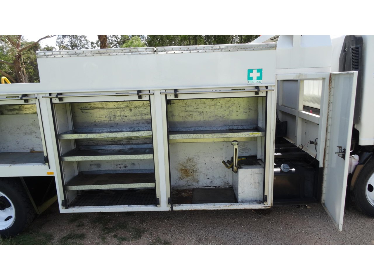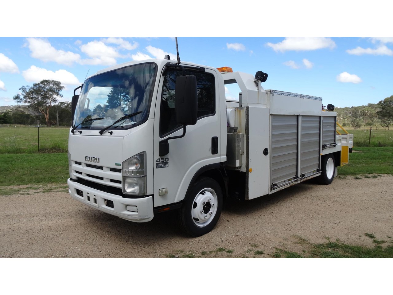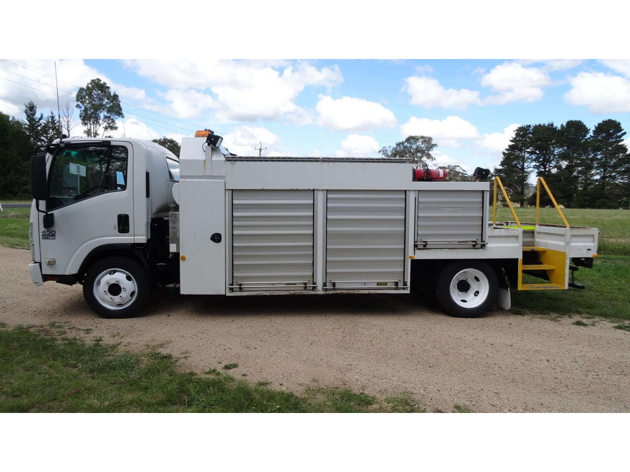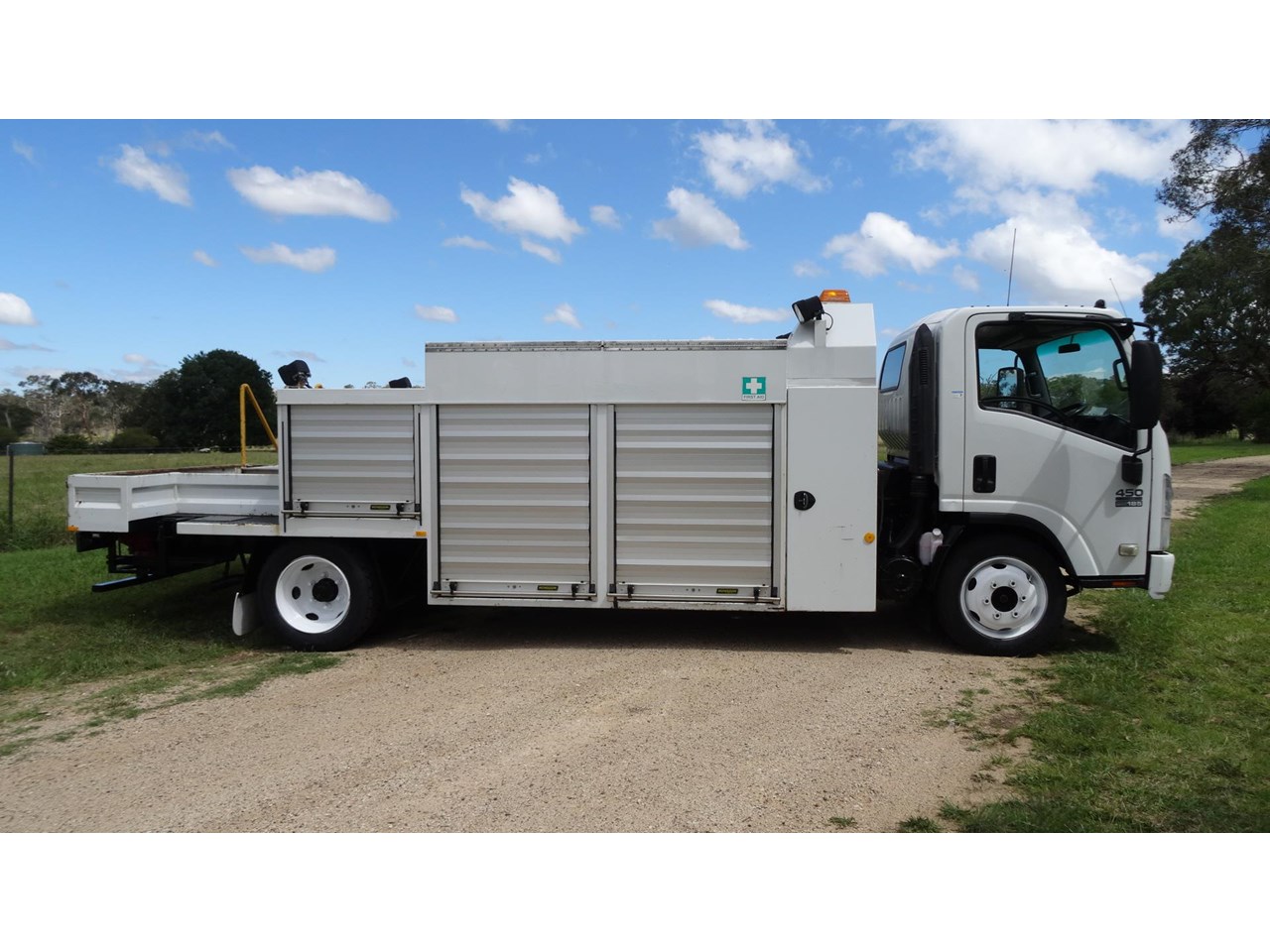 ISUZU NQR450 SERVICE TRUCK, YEAR- 01/2012, LOW 221900 KMS, 185 HP TURBO INTERCOOLED, 6 SPEED MANUAL, 8700 GVM, 12000 GCM, 4480MM WHEELBASE, 5360MM L X 2250MM W, SERVICE BODY WITH TOOLBOXES AND REAR MOUNTED WINCH, ELECTRIC TRAILER BRAKES FITTED, SPRING SUSPENSION, S/N- 2251, PRICE - $35,900.00 INC GST, LOCATED IN ARMIDALE NSW