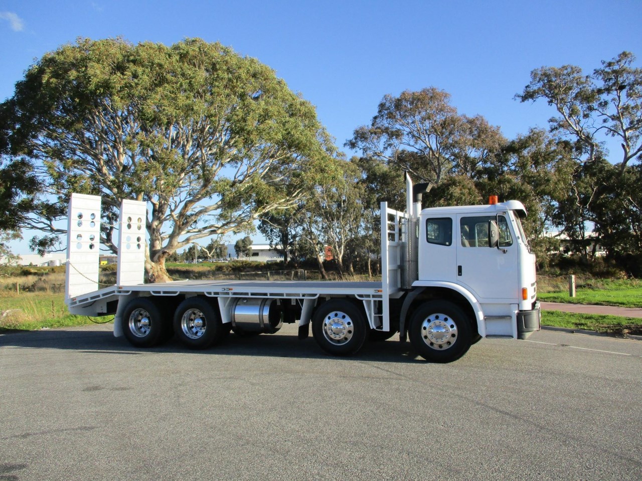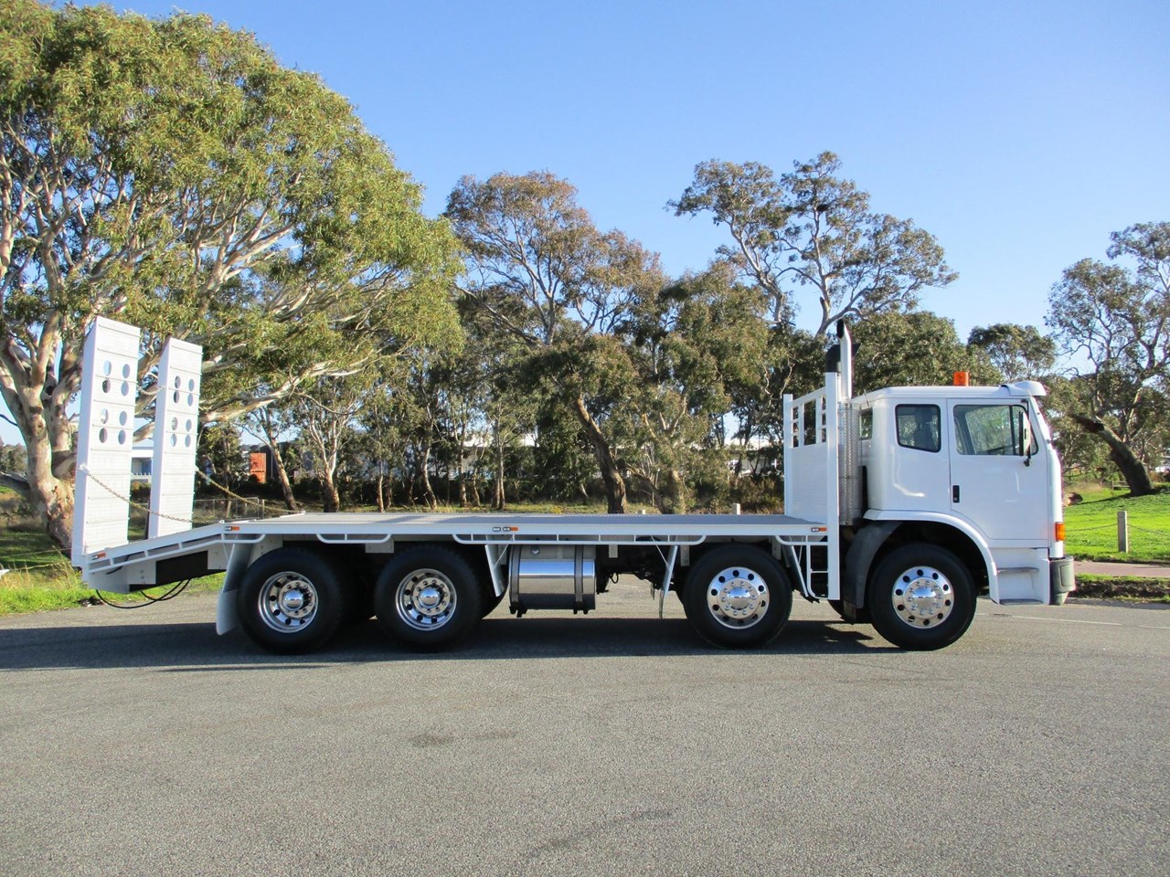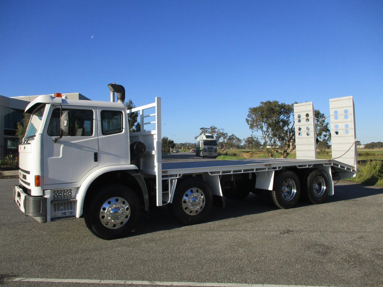 Acco 2350G Beavertail Tray Truck, Cummins ISM, Allison Auto Transmission (Recon Transmission), RT40-145 Diffs, Rubber Block Suspension, Alloy Rims On 10 Stud Hubs, New Tyres All Round, AM/FM Radio CD player, NEW 5.8m deck with 1.2m beaver (Total length 7m Tray, Hydraulic 750mm wide ramps, 6 x tie down plates in floor. New Paint, Lots Of $$$ Spent Ready For Registration.