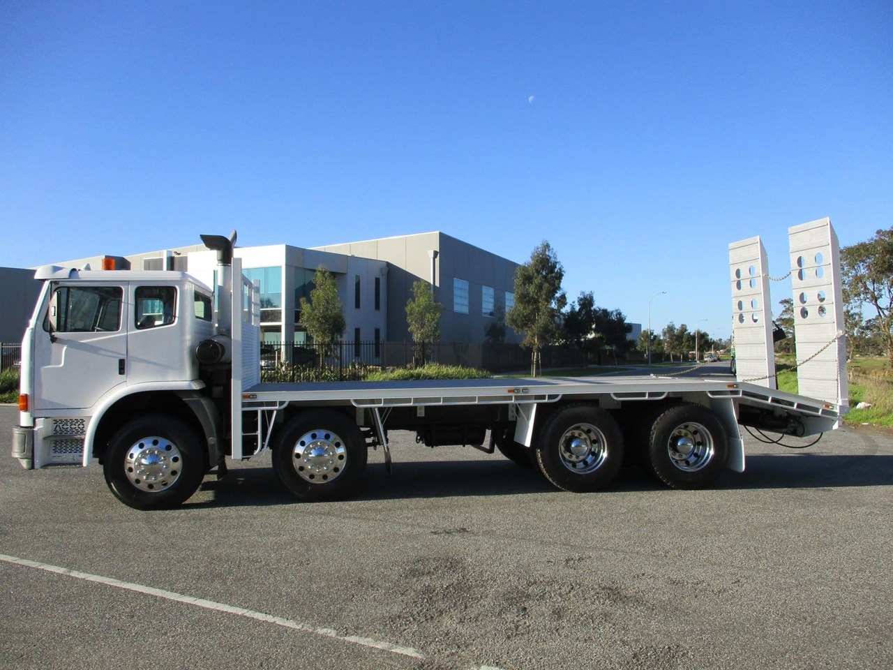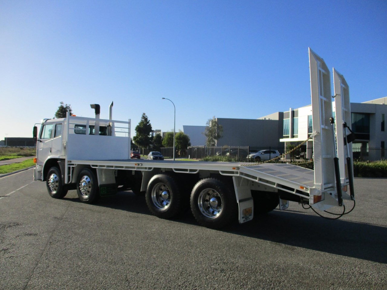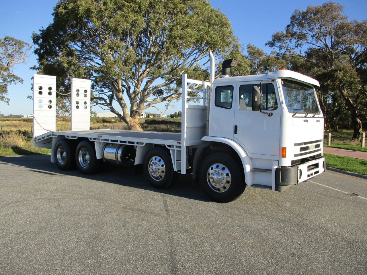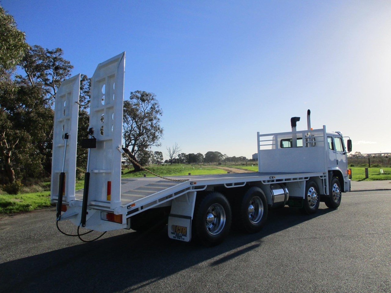 Acco 2350G Beavertail Tray Truck, Cummins ISM, Allison Auto Transmission (Recon Transmission), RT40-145 Diffs, Rubber Block Suspension, Alloy Rims On 10 Stud Hubs, New Tyres All Round, AM/FM Radio CD player, NEW 5.8m deck with 1.2m beaver (Total length 7m Tray, Hydraulic 750mm wide ramps, 6 x tie down plates in floor. New Paint, Lots Of $$$ Spent Ready For Registration.