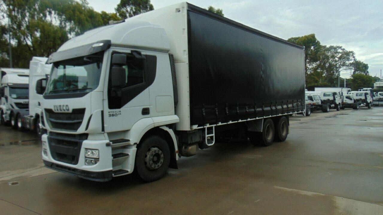 2015 Iveco ATi360 Stralis White Tautliner 8.0l 6x2 - 2015 Iveco Stralis ATi360 with a 14 pallet tautliner body, High roof sleeper cabin, Call the used truck sales team to arrange an inspection. Internal body length 8,500mm, Internal body height 2,750mm. Total height 4,200mm