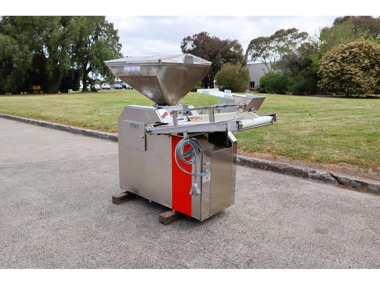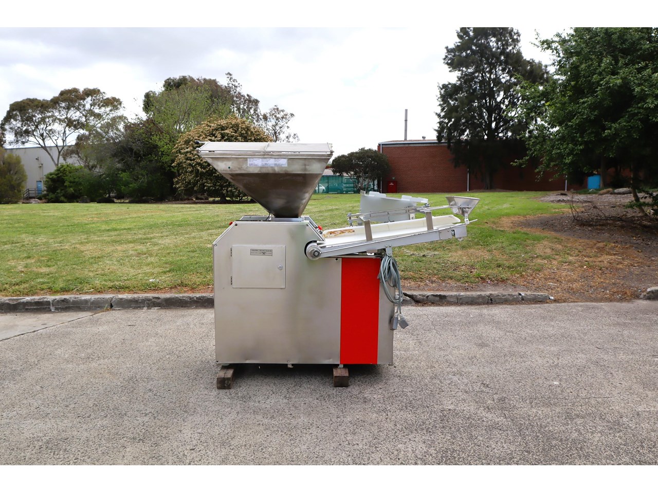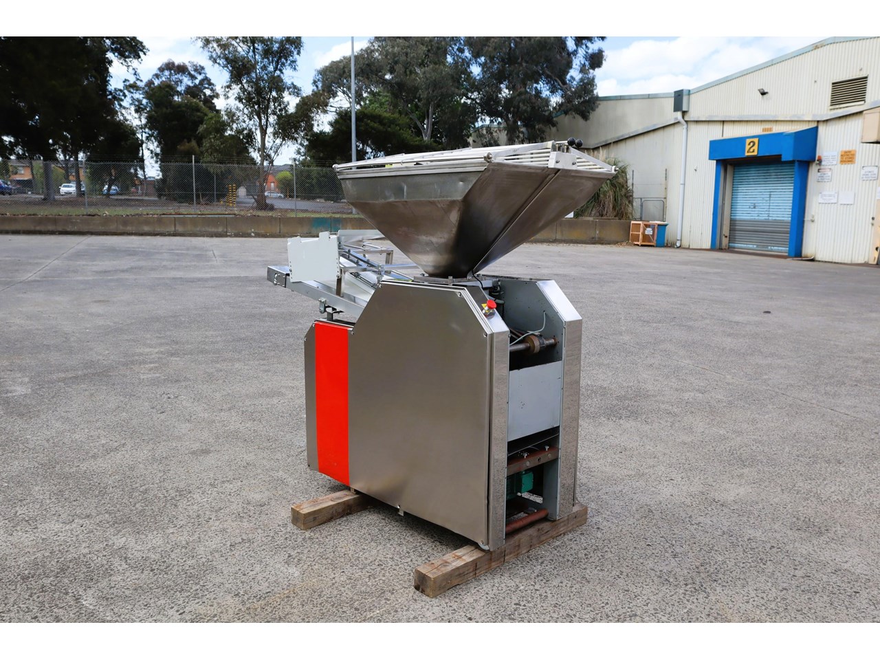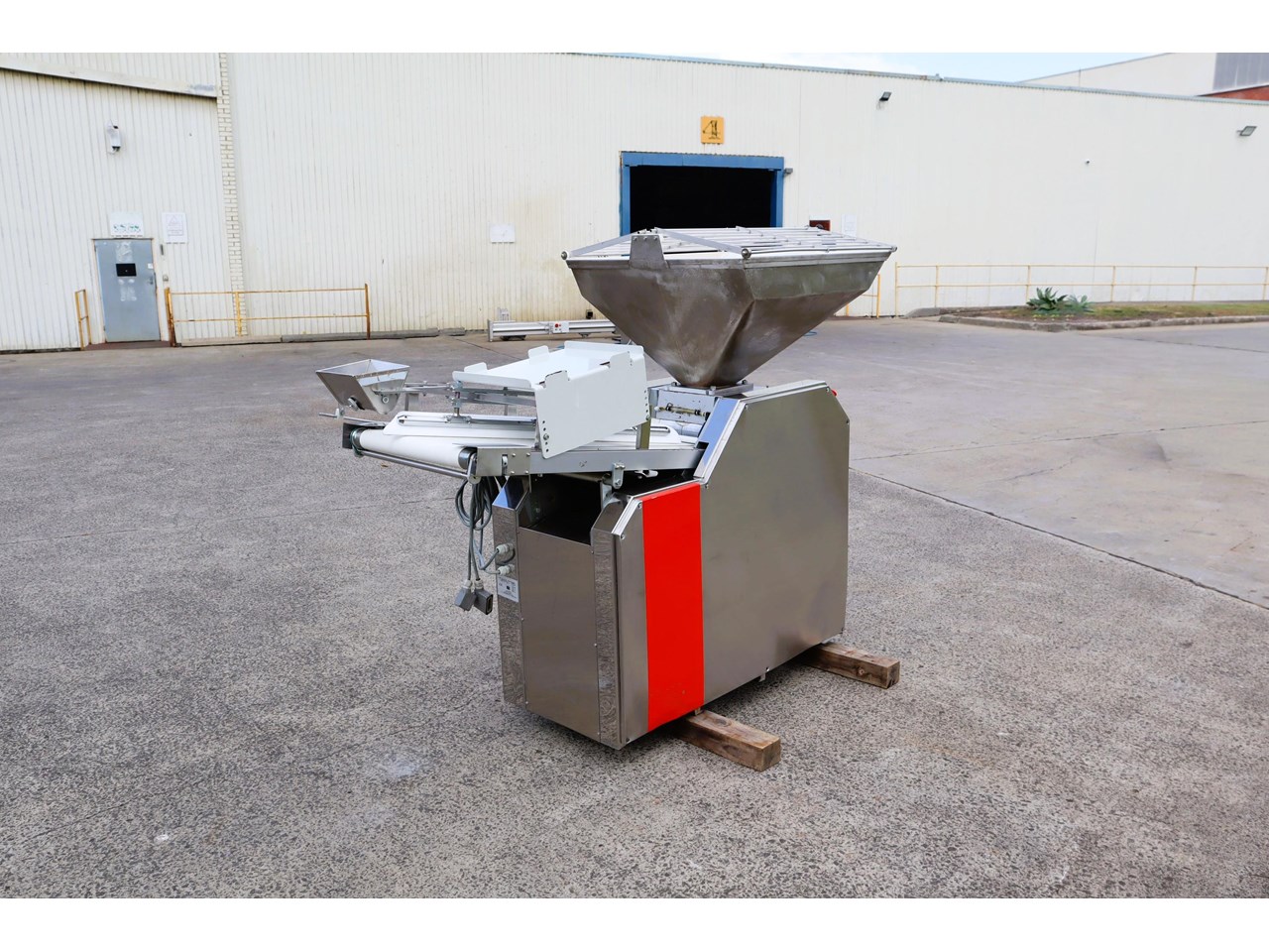 Heavy duty industrial dough divider engineered for precise, consistent dough portioning in bakery operations. Features a robust stainless steel, non-stick hopper and adjustable compression for repeatable results across a variety of dough types. Programmable weight control with touchscreen interface ensures accurate portioning and process monitoring. Designed for long-term intensive use and smooth integration with baguette production lines.