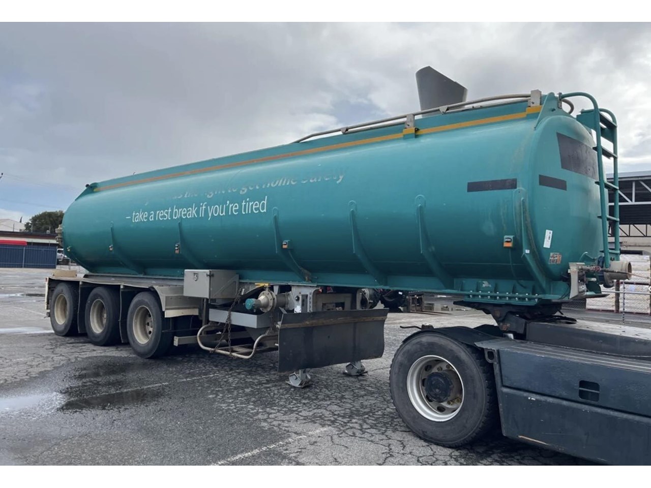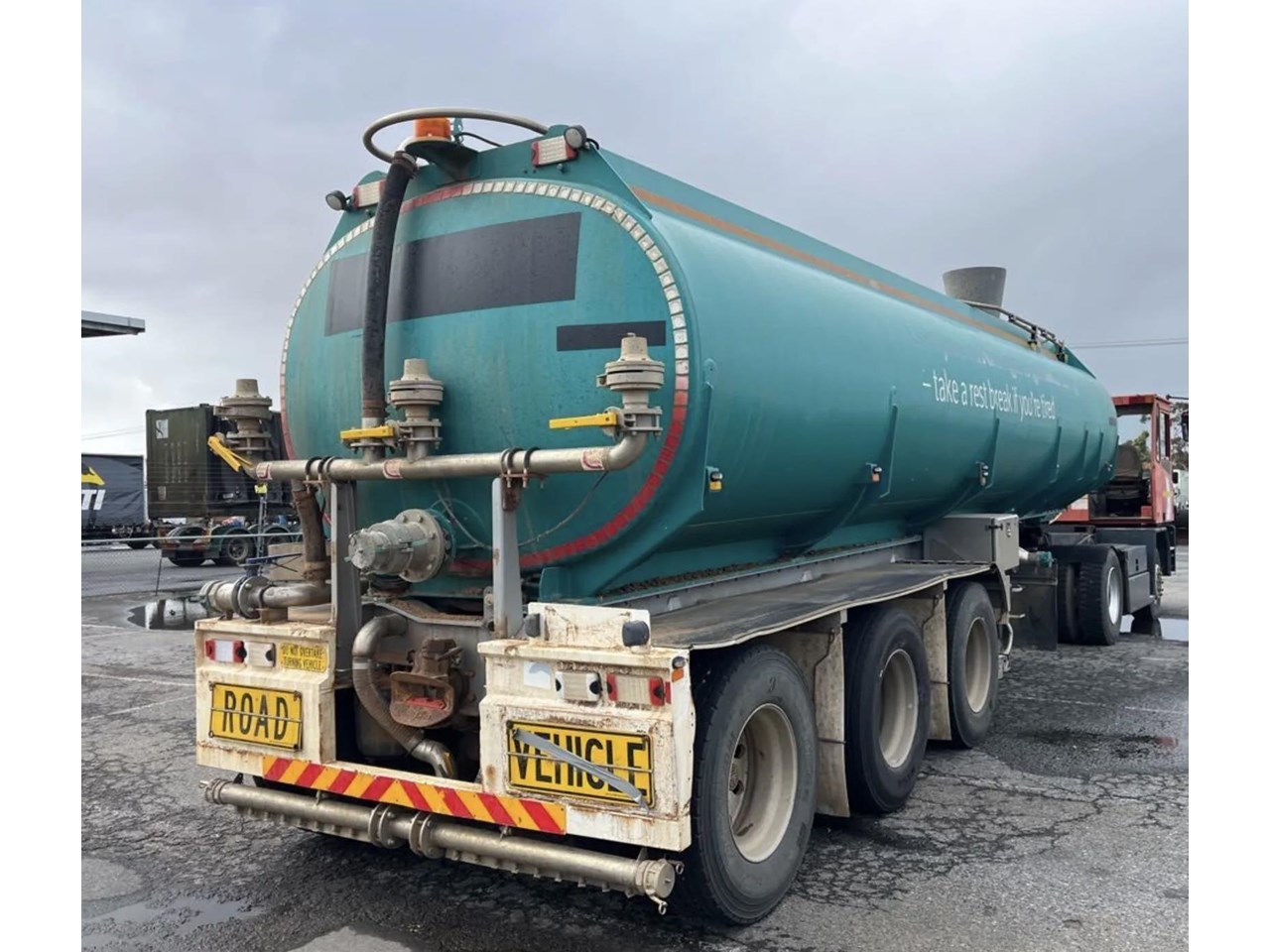 Jamieson Boomer 2014 build 30000 litre aluminium road train lead water tanker . Yanmar diesel powered pump , rear sprays and dribble bar , Ringfeder , BPW airbag suspension , led lights , wind down legs , safety rails on top .