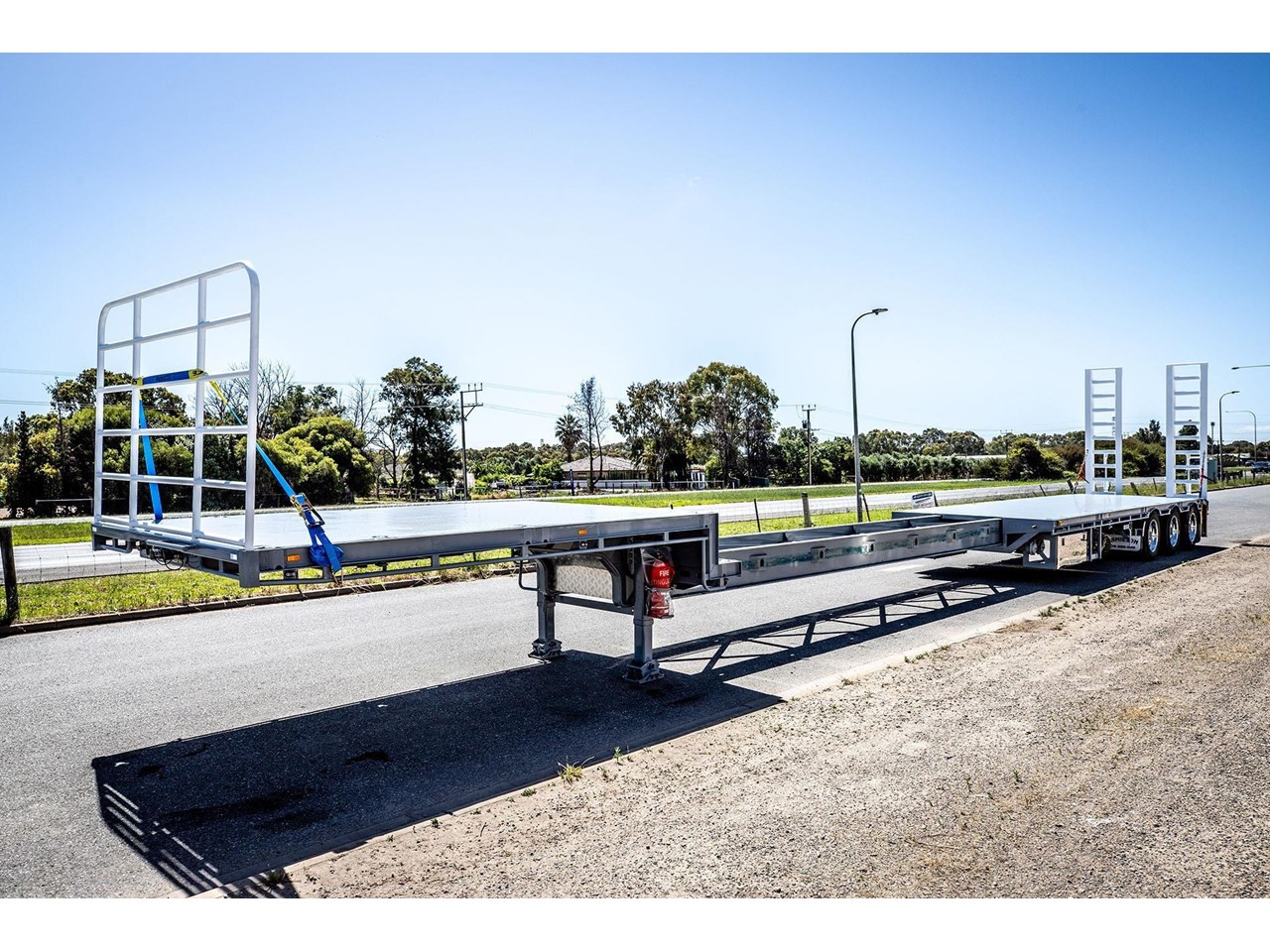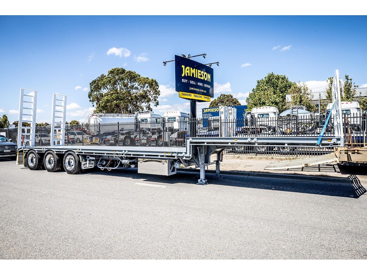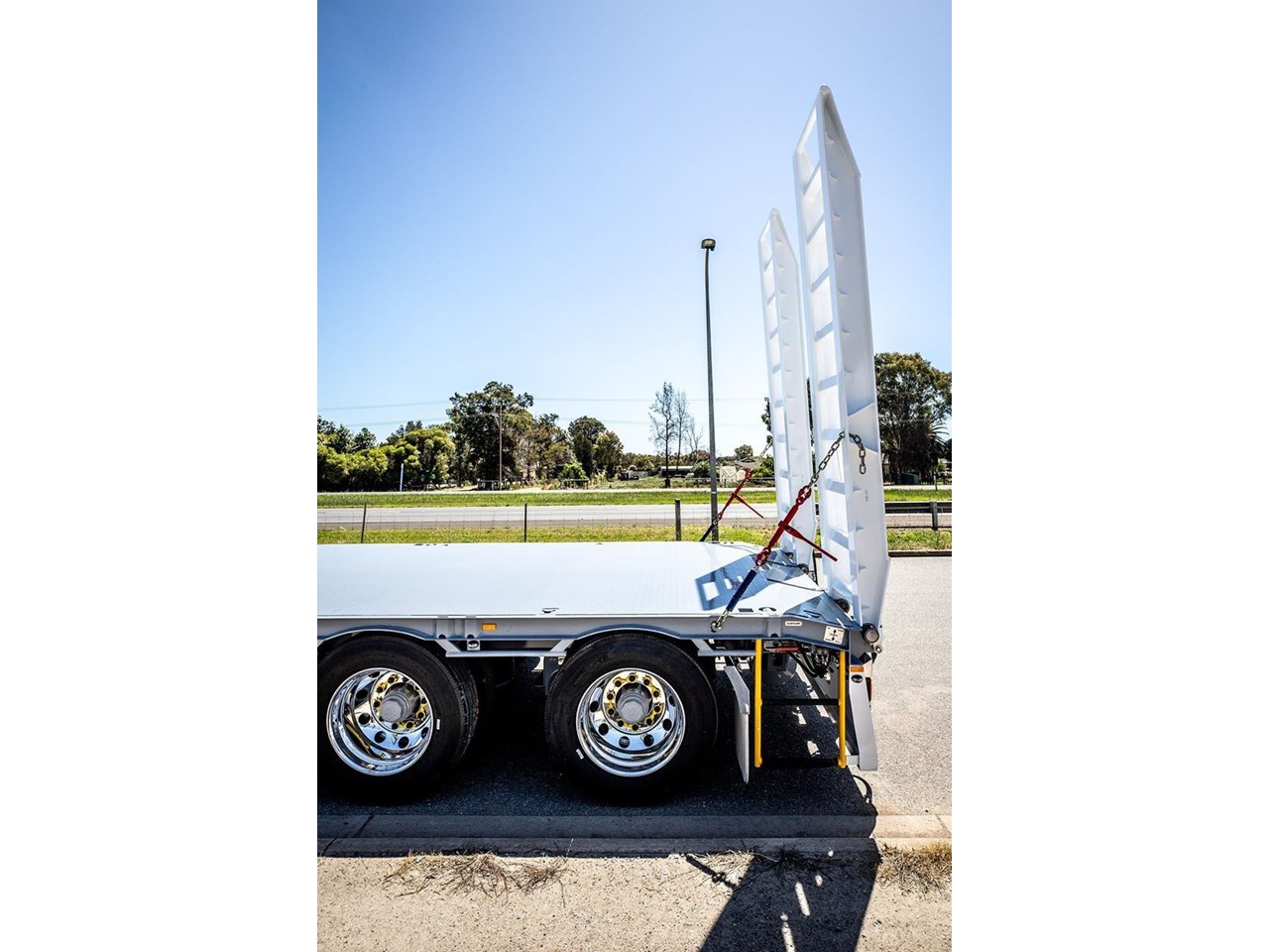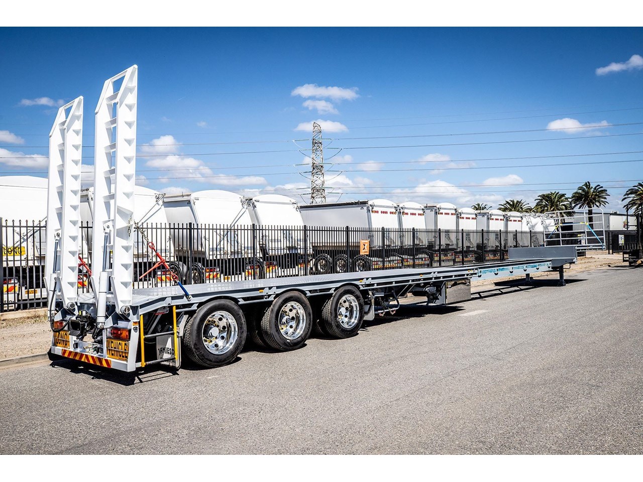 DROP DECK EXTENDABLE TRAILER WITH DIESEL ENGINE POWERED HYDRAULIC RAMPS - TRI-AXLE - ROAD TRAIN RATED - 13.6M (45')