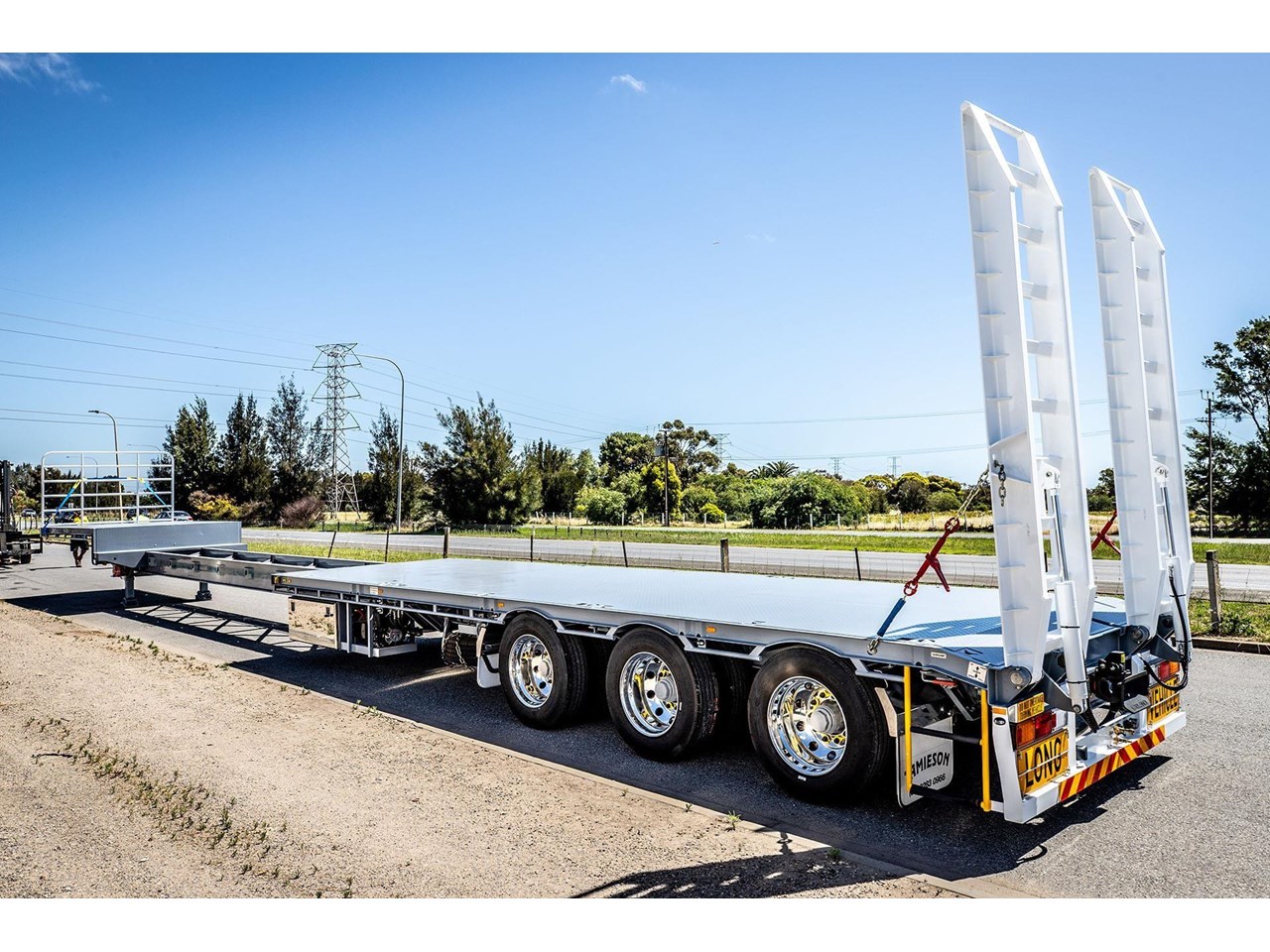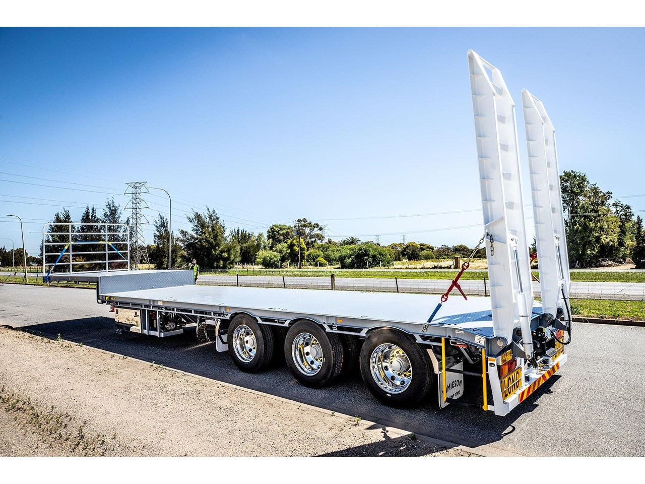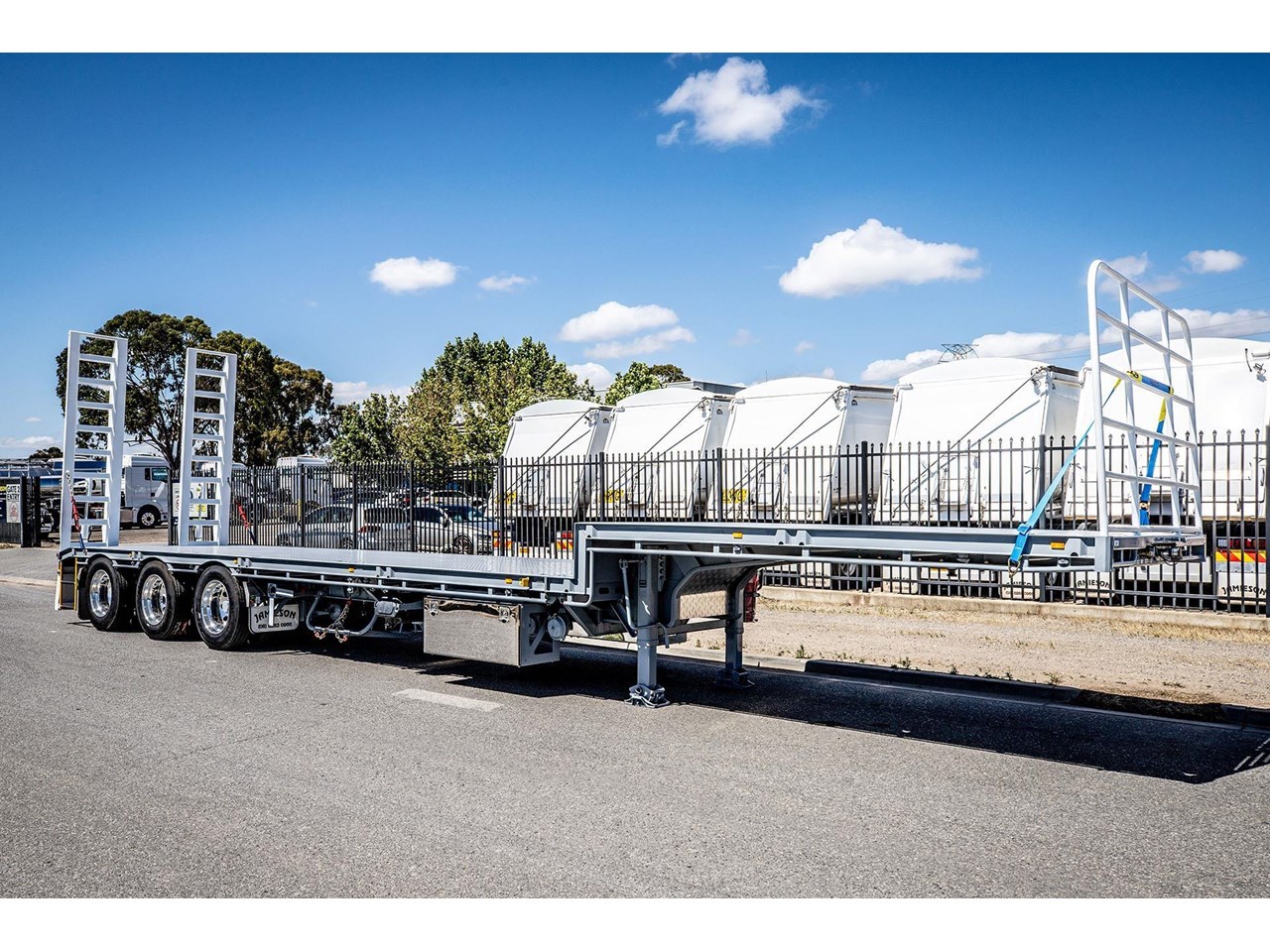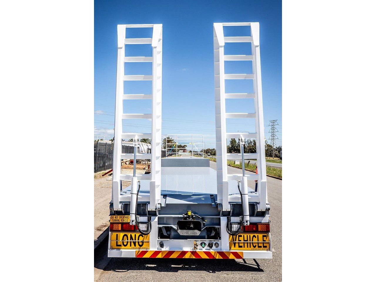 DROP DECK EXTENDABLE TRAILER WITH DIESEL ENGINE POWERED HYDRAULIC RAMPS - TRI-AXLE - ROAD TRAIN RATED - 13.6M (45')