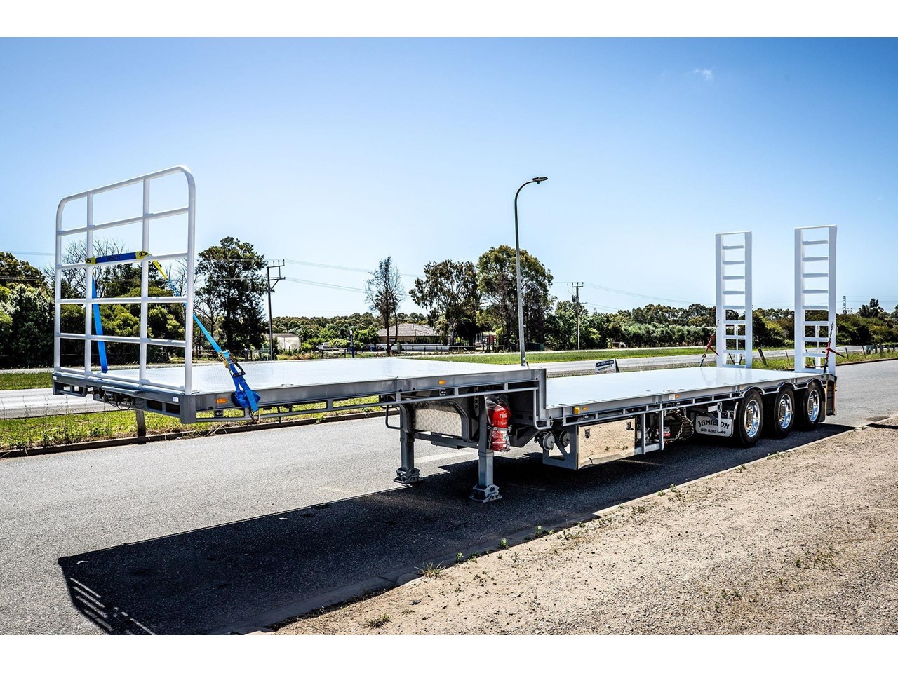 Ideal for transporting long, heavy, and oversized loads exceeding standard trailer lengths, e.g. containers, construction or agricultural equipment, large machinery, and general freight.