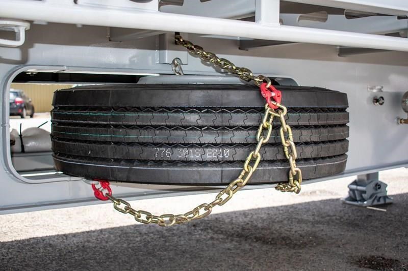 - Chain tie-downs (anchor points) spaced full length of trailers