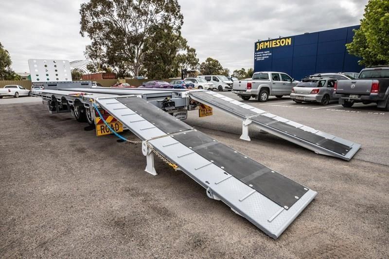 IN STOCK NOW - AUSTRALIA-WIDE DELIVERY. 2025 JAMIESON HEAVY DUTY EXPANDING DROP DECK TRAILER / WIDENER WITH BI-FOLD HYDRAULIC RAMPS - TRI-AXLE - 13.7M (45')