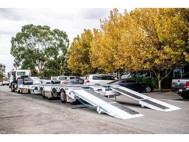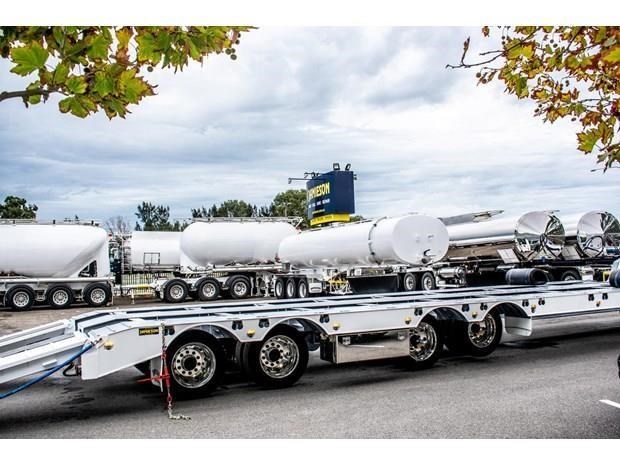 Brand new Jamieson heavy duty quad-axle low loader (lowboy) / widener trailer with rear bi-fold hydraulic ramps. Suit heavy haulage, large equipment etc.