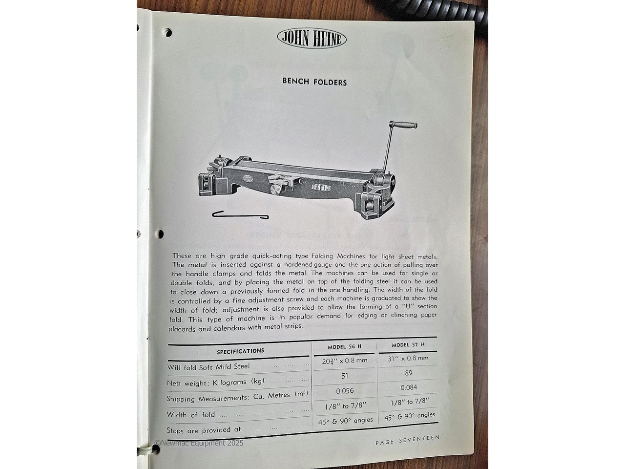 | Title | JOHN HEINE 57H BENCH FOLDER |