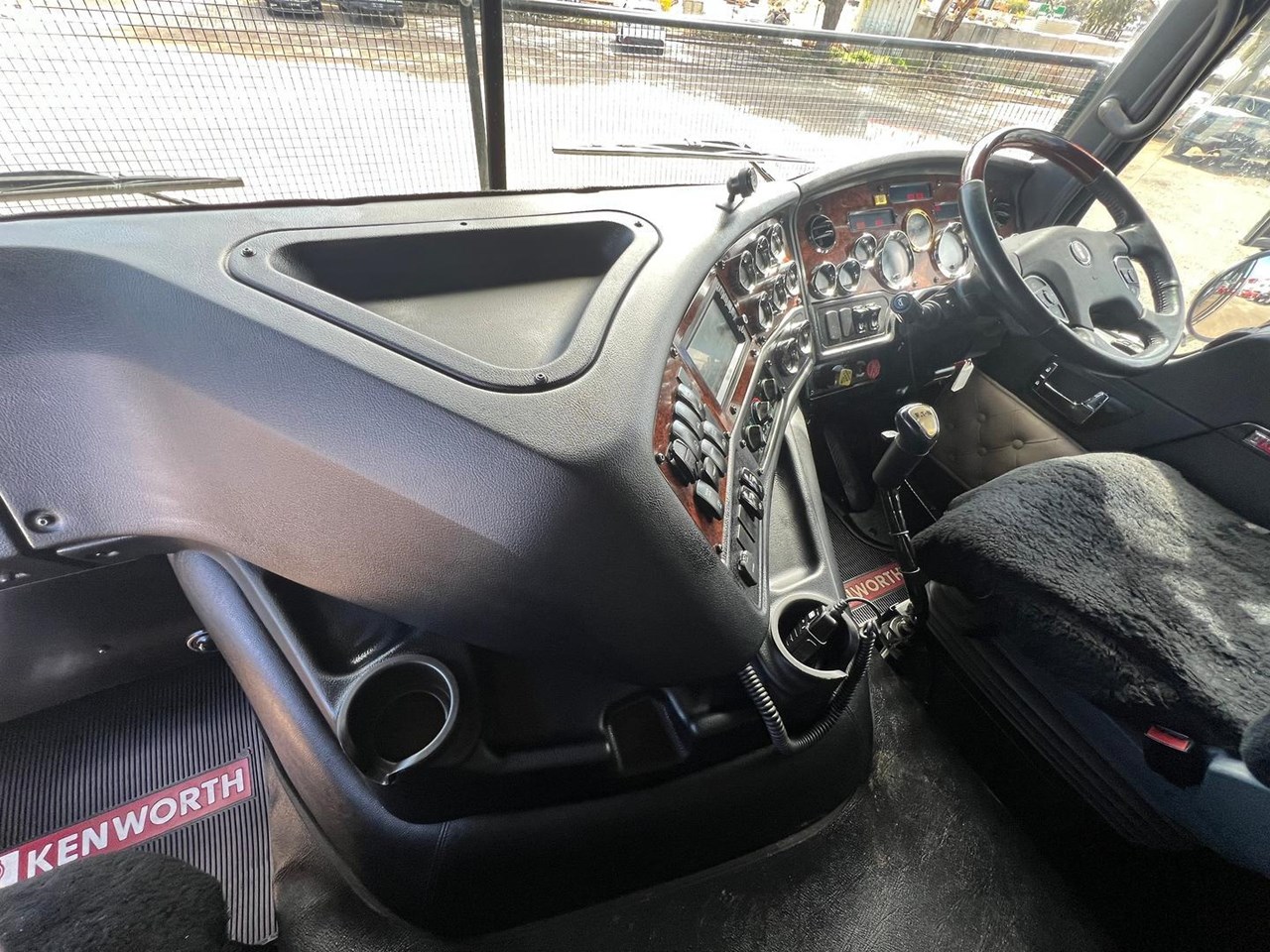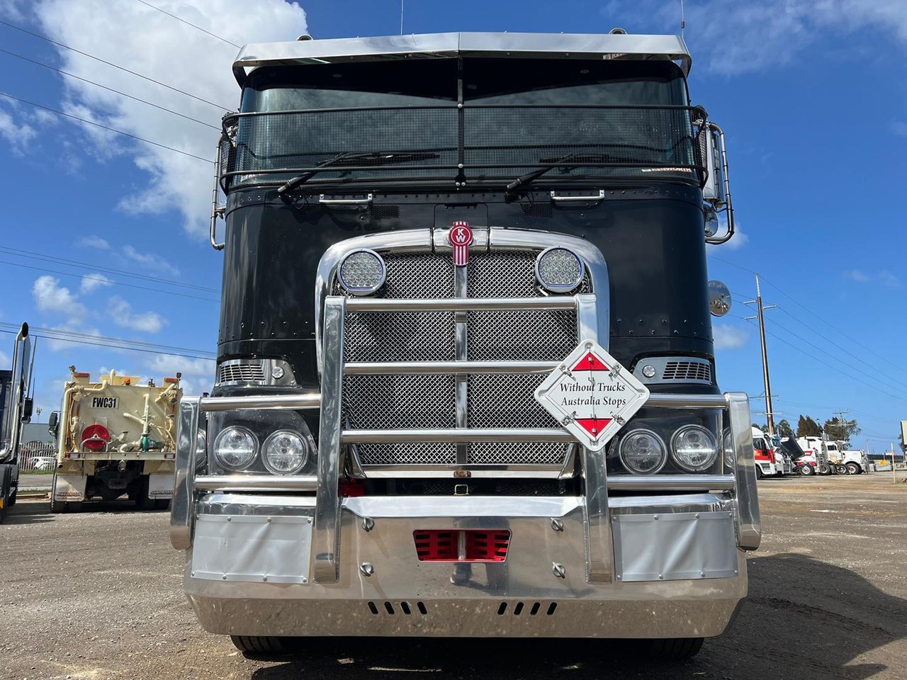 Cummins ISX X15 Engine @ 550hp, 18 Speed Manual (RTLO20918B) Gearbox, Meritor MT21-165GP Rear Axles @ 4.3:1 Ratio on Kenworth Airglide 460 Airbag Suspension, Alloy Wheels, Stainless Steel Rear Circle Guards, 2" Fixed Jost QRTT, Alloy FUPS Bull Bar, Rear Chassis Mounted Ice Pack Bunk Cooler, Tipper Hydraulics with Return Line, UHF, Radio/Bluetooth, 2 x Draw Fridge, Upright Cupboards with Microwave, Very Tidy Truck with Genuine Kms & 97 Tonne B Double/Road Train Rating.