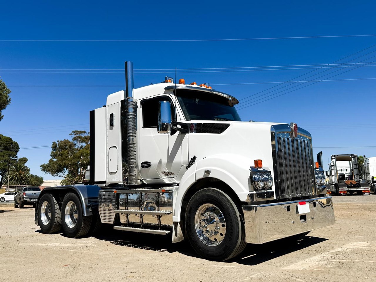 2021 Kenworth T410 SAR 6x4 Prime Mover, 510hp Paccar Engine, 18 Speed Manual Roadranger Transmission, Meritor Rear Axles with Diff Lock & Cross Lock, Kenworth Air Bag Suspension, Dual Exhausts, Fixed JostTurntable with Nylon Top, Stainless Guards, Underbunk Drawer Fridge, Coolabah Koala Bunk Cooler, 10 Stud Alloy Rims