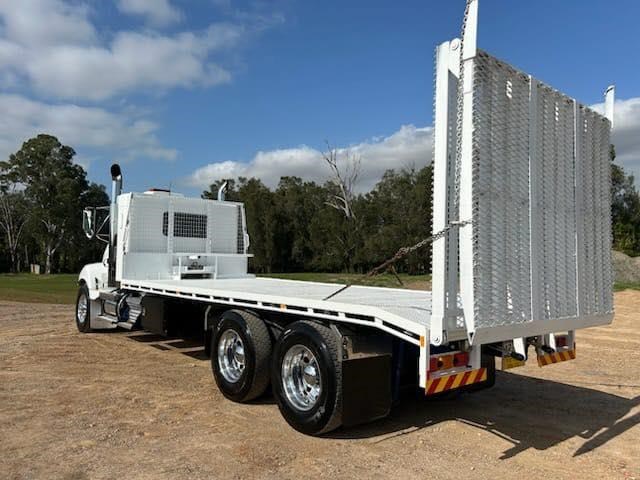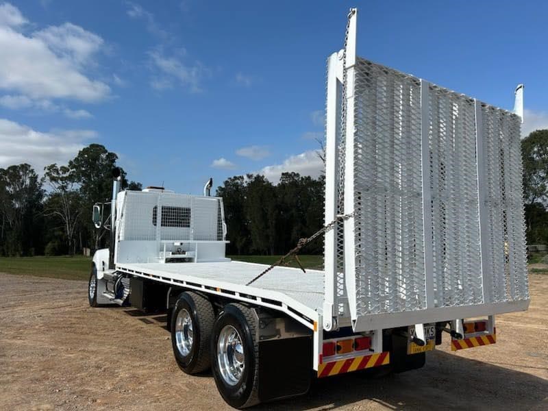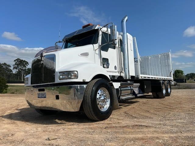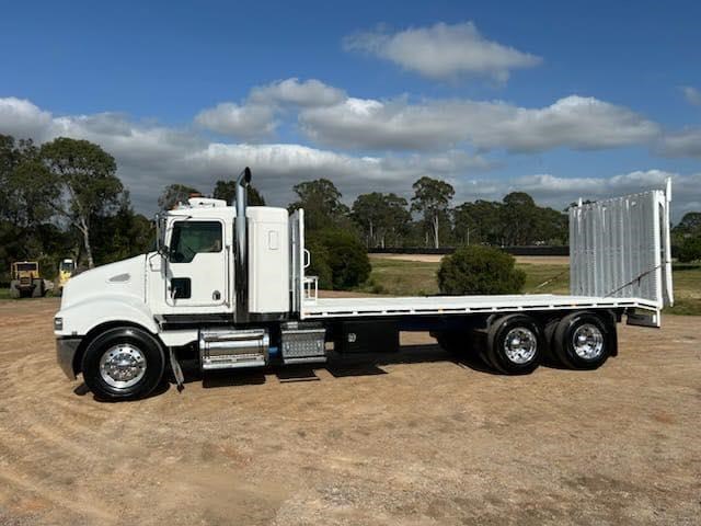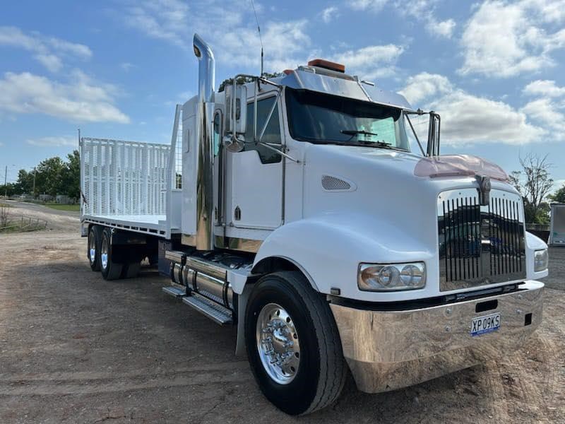 2006 Kenworth T350 IT bunk, Cummins ISM 450hp, auto, X locks, airbag suspension, sports mufflers, 6.5m beavertail with bi-fold ramps and winch for $120,000+GST