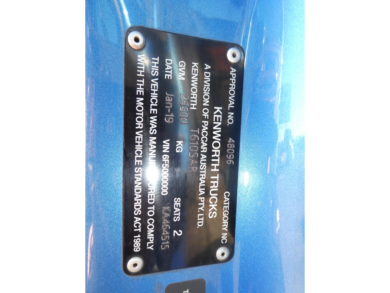 2019 KENWORTH T610 SAR PRIME MOVER, ROADTRAIN AND BDOUBLE RATED, CUMMINS EURO 5 ISX , AIR BAG SUSPENSION, AUTO GREASER, BUNK FRIDGE, 18 SPEED EATON, ICE PAC A/C, 9409 ENGINE HOURS, DASH REPLACED AT 160000KMS UNDER WARRANTY.