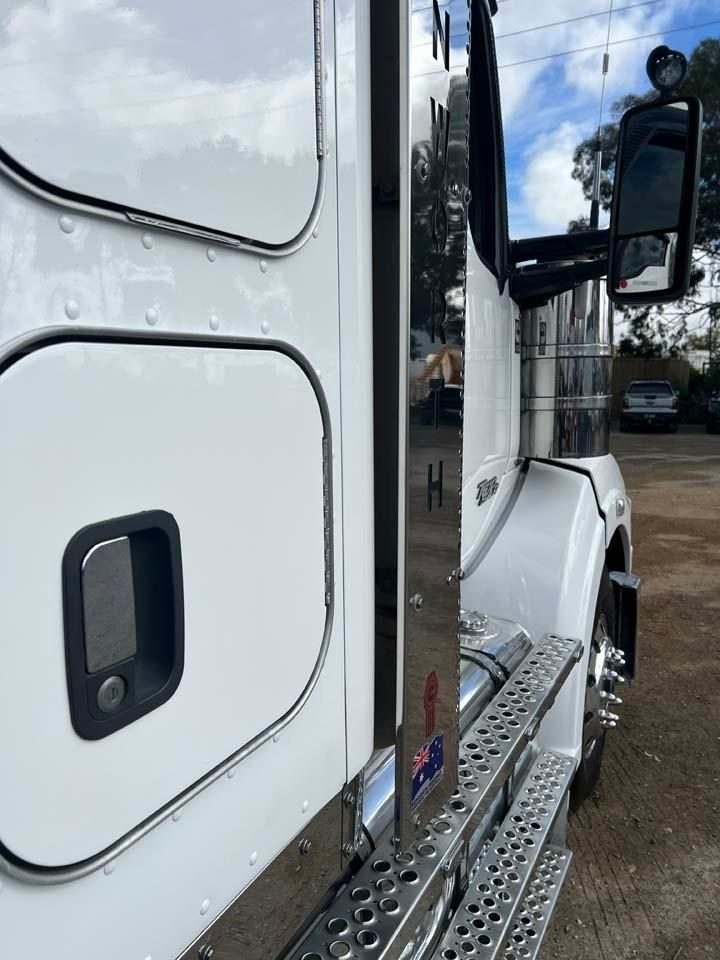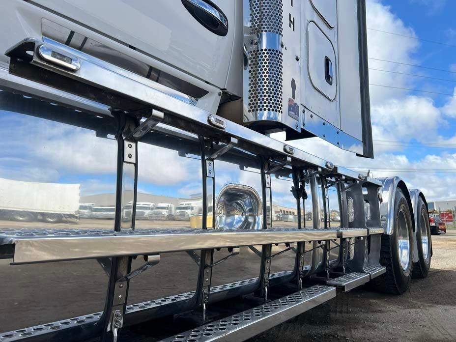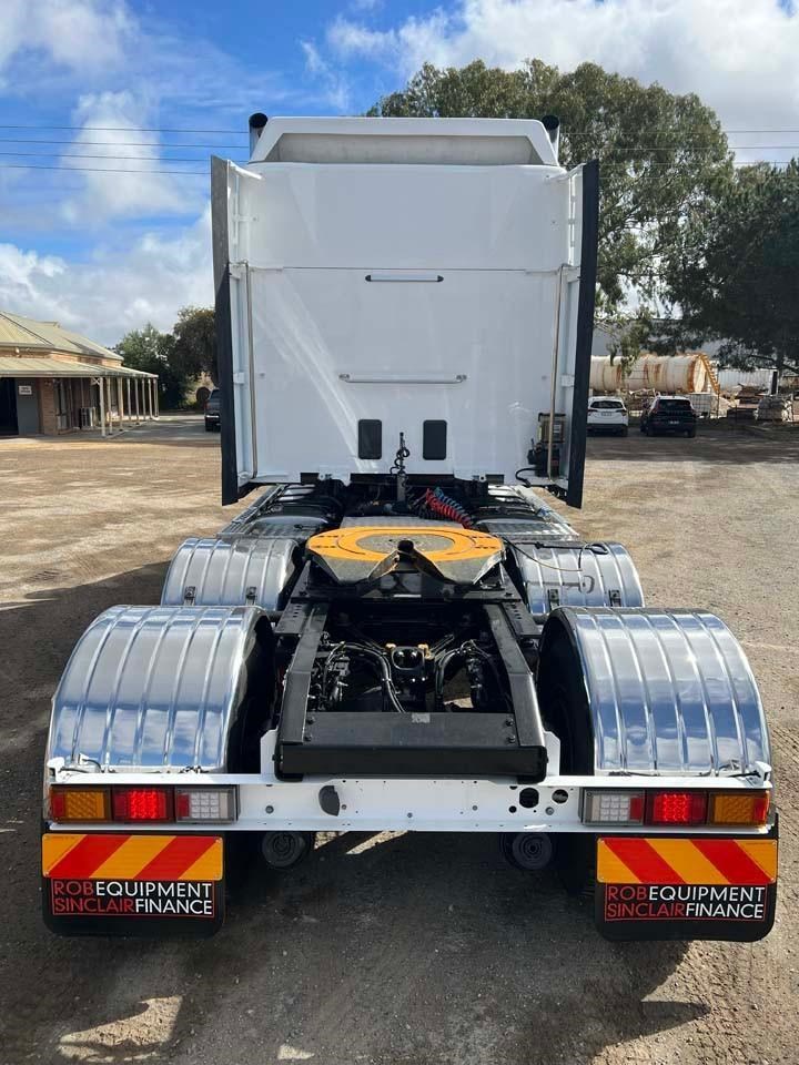 Cummins ISX X15 @ 550hp, 18 Speed Two-Pedal (FO-20E318B-MXP) Gearbox, Dana D46-170 Rear Diffs @ 3.73:1 Ratio on Kenworth Airglide 460 Airbag Suspension, Ally Wheels, Stainless Circle Guards, Jost 2" Fixed QRTT, Alloy FUPS Bumper Bar, 860mm Integrated Sleeper with Dove Tail & Ice Pack Bunk Cooler, Draw Fridge, Radio/CD, UHF, Very Tidy Ex Fleet Truck with Service History Available on Request & 97 Tonne B Double/Road Train GCM.
