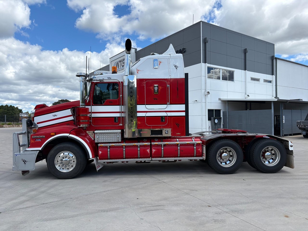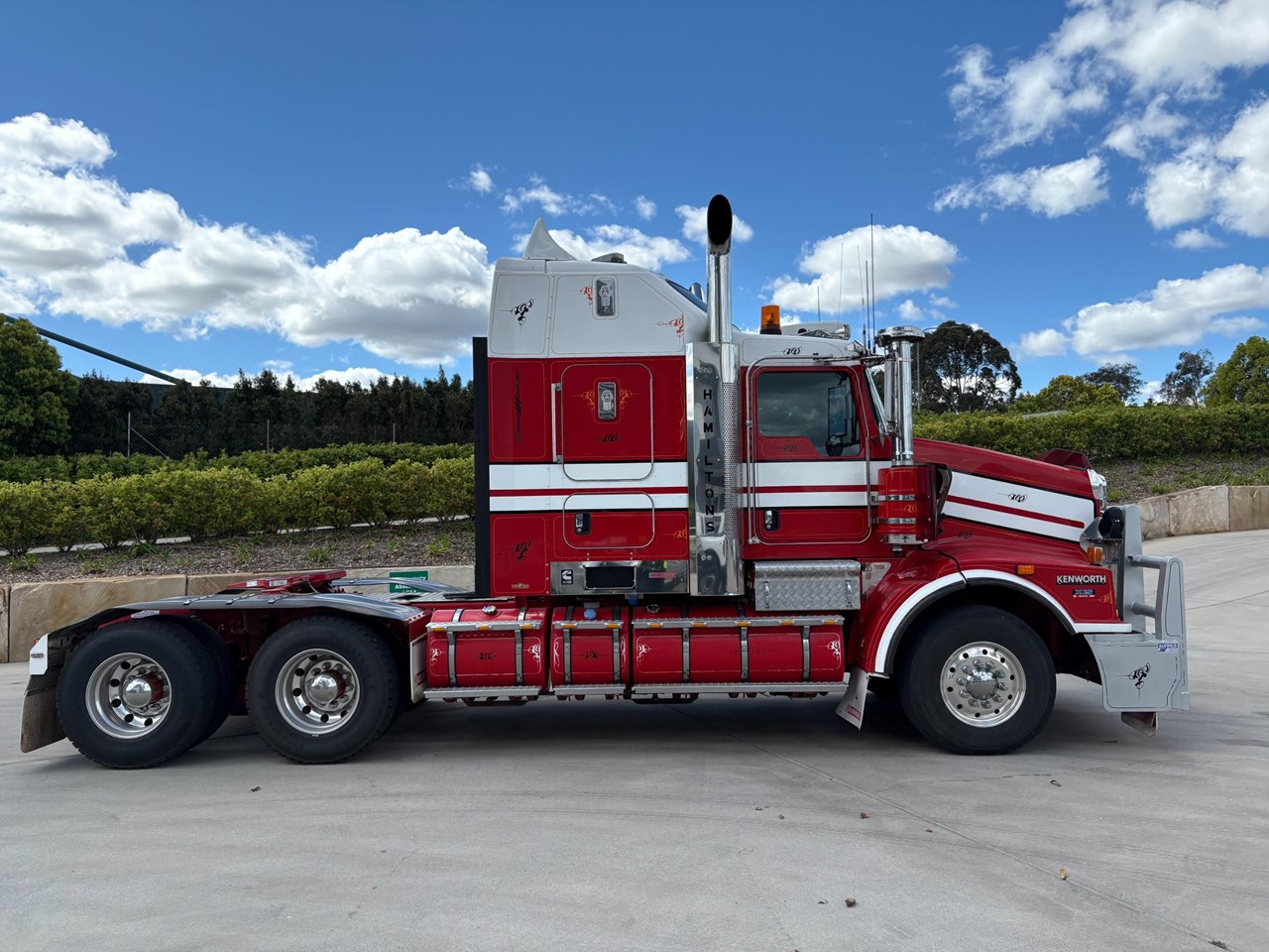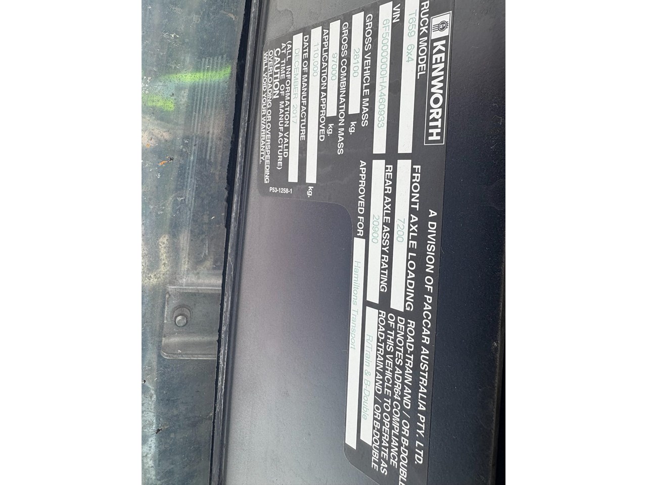 Kenworth T659 Prime Mover: 2017, 1,074,457km, 17,933Hrs, Cummins X15 550Hp, 18 Speed Eaton Manual Transmission, 8 Bag Airbag Suspension, Meritor 46-160s, Jost JSK37 50mm Turntable, 50 inch Sleeper, Alloy 4 Post BullBar, Pure Air Bunk Cooler, Bunk Bed, Engle Fridge, 2x LED Spotlights, 1x Lightbar, Red Dot, Revolving Lights, Rubber Drive Guards, Side Tipper and End Tipper Hydraulics, Power Divider, Double Diff Locks, Extra Clearance Lights, 27,600kg GVM, 110,000kg GCM.