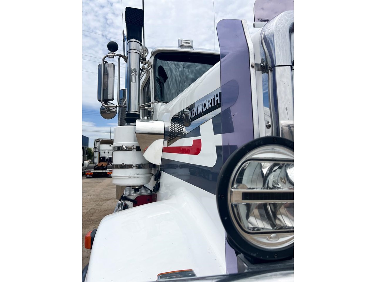 2009 Kenworth T908 6x4 Prime Mover,600 hp Cummins ISX EGR eng with 18 spd manual trans-RTL022918B-Dana RT52-190 Rear axle @ 4.56 on Kenworth KW6-60A 21T 6 rod spring susp,Alloy wheels and FUPS bull bar,Offsets on steer,36" low roof intergreated sleeper with Icepack-ES bunk air con,PTO hydraulics set up for end and side tippers,Diff and X Locks to both rear axles,2" fixed QRTT,Fuel tank on RHS converted to toolbox,Alloy water tank,Dolly pull in rear,Alloy walkplate,Rad/Cd, is a good spec heavy rated truck.