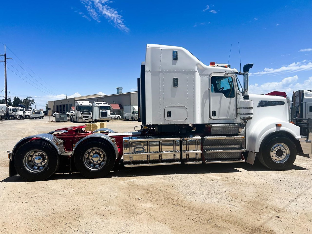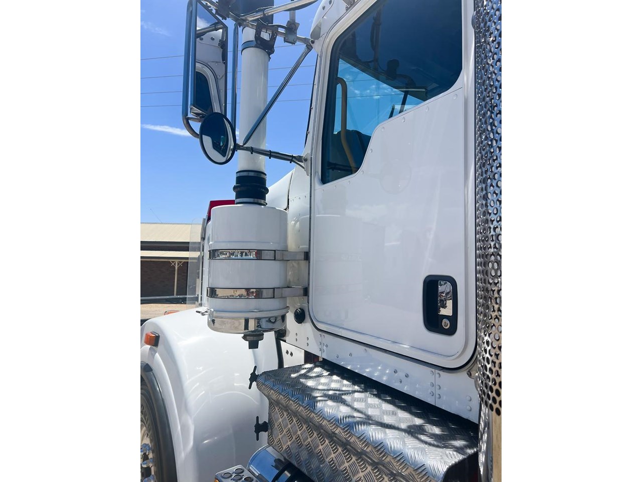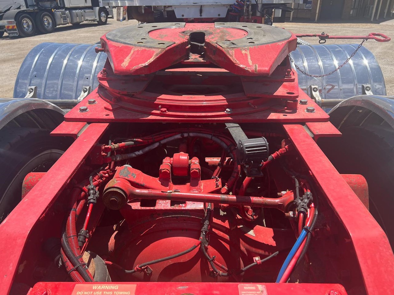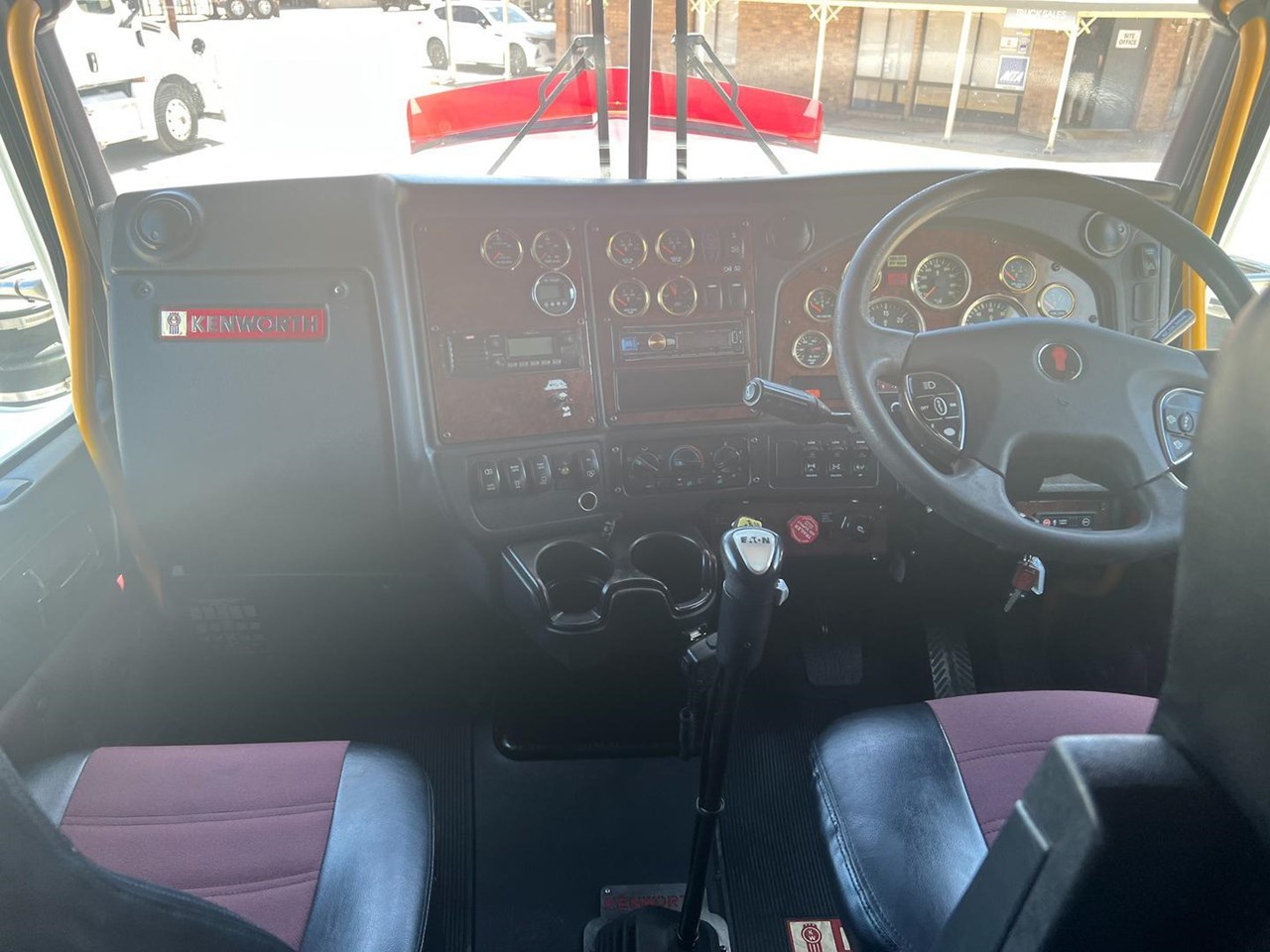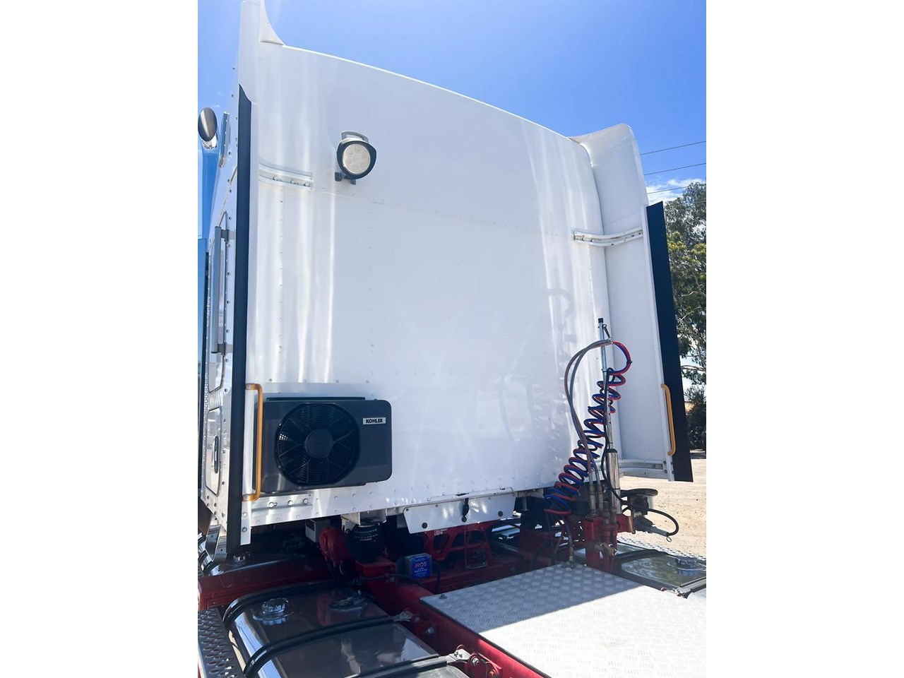 2017 Kenworth T909 6x4 prime mover,600 hp Cummins X15 eng-Has had Cummins mid life done- with 18 spd trans-RTL020918B,Meritor RT52-190 Rear axles @ 4.56 on Neway AD246/10 air bag susp,Alloy wheels and FUPS bull bar,Super singles on steer,50" high roof intergreated sleeper with Ecowind bunk air con,Diff and rear axle x lock,Roof mounted air con condensor,2 x rotating beacons,Dolly pull in rear with air and electric fittings,Draw Fridge,Rad/Cd,UHF,Water tank,3.5" Fixed is a very tidy low km 140 ton rated truck.