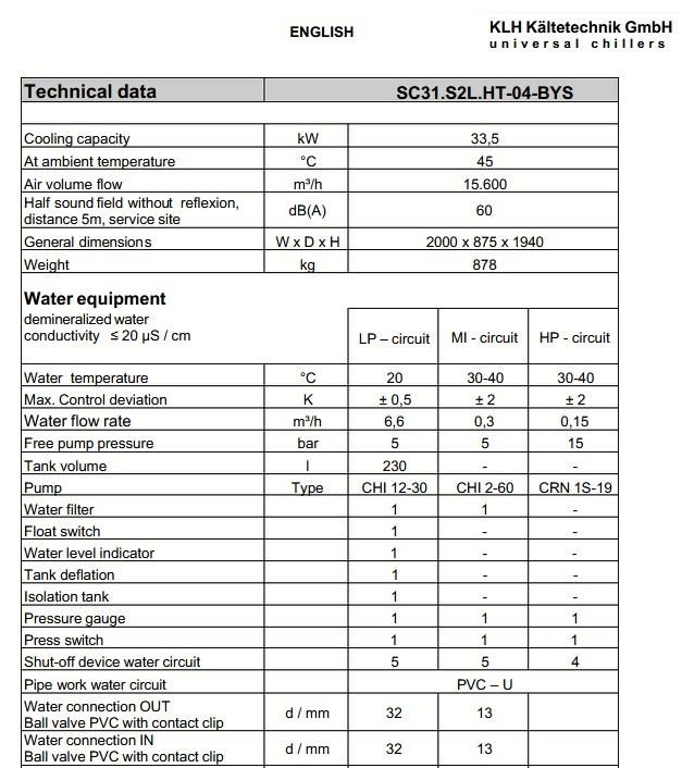 | Title | KLH KALTETECHNIK SC 31 INDUSTRIAL WATER CHILLER |