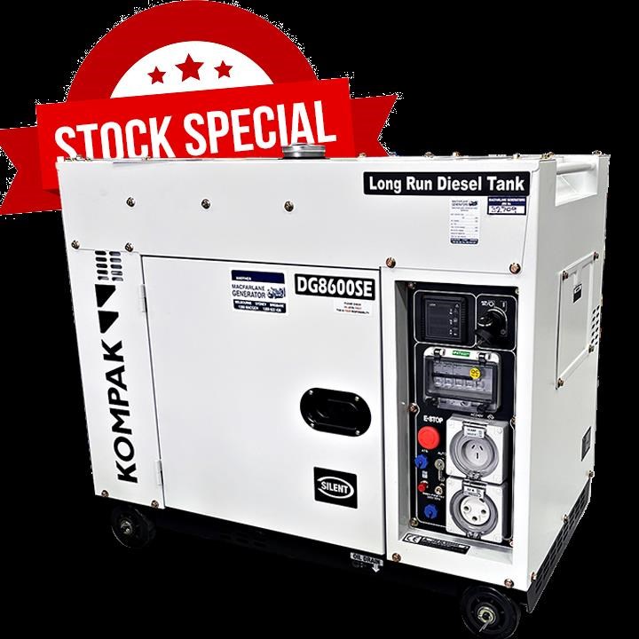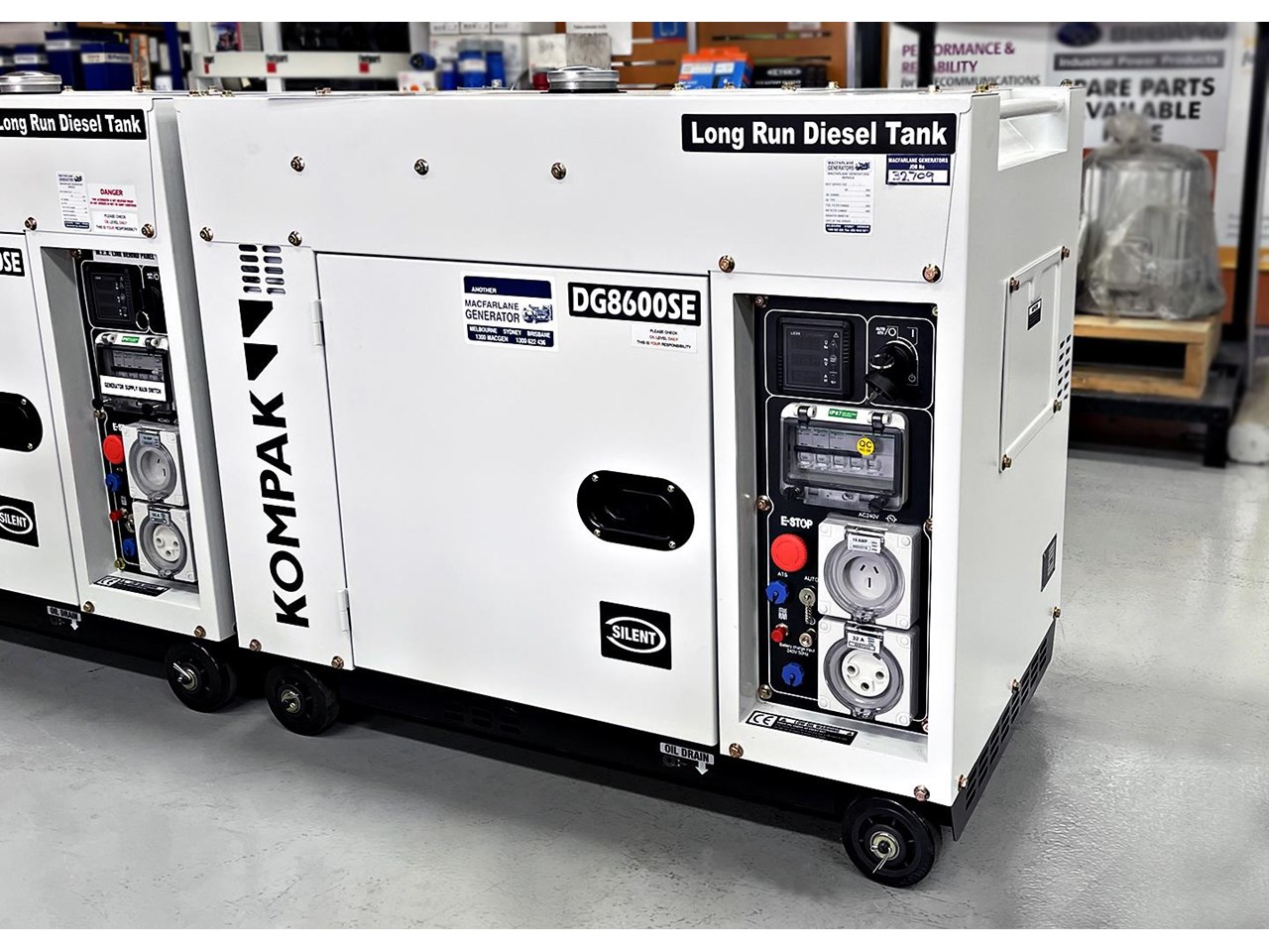 KOMPAK Silent Diesel Generator DG8600SE is perfect for a Home Stand-by power source with 2 wire auto start, ATS socket and Leakage breaker designed to meet Australian technical standards.