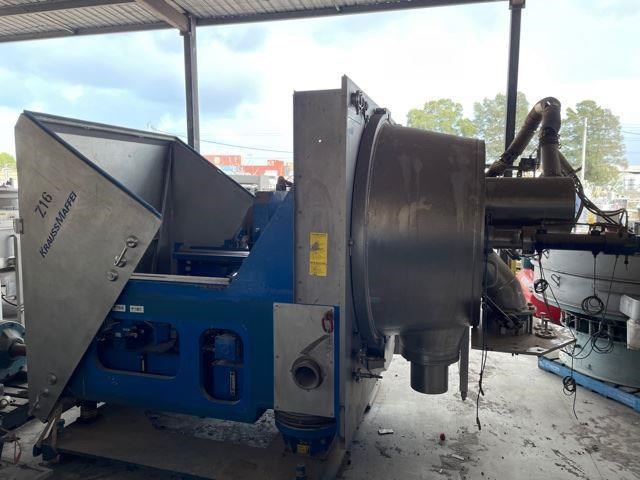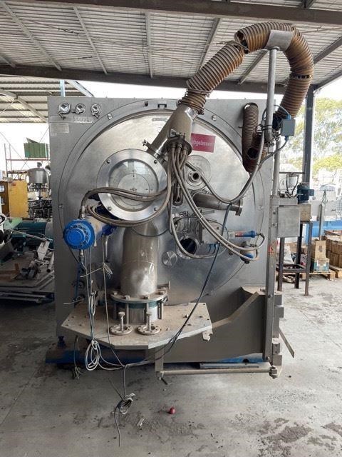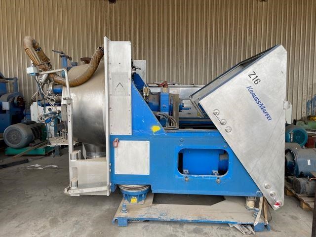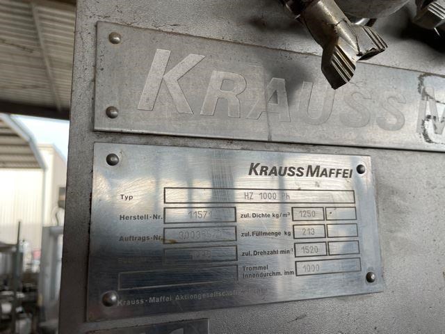Krauss-Maffei horizontal peeler centrifuges are batch-operated filtration centrifuges known for their reliable performance at high capacities. They are used in many processes, primarily in the bulk chemicals, fine chemicals, and food industries. Process advantages Increased filtration capacity Creating a vacuum beneath the filter cloth increases the filtration pressure and boosts the filtration rate. Superior product purity The filtration rate can be adjusted to prolong the contact time between wash liquid and solids to produce a purer cake. Regeneration of the residual heel is achieved by means of backwashing through the filter medium. As a result of backwashing and throttling of the filtration rate, the siphon feature enables feeding into a liquid pool to achieve uniform distribution of solids without vibration, even with fast-filtering products. Benefits Krauss-Maffei peeler centrifuges can be adapted easily to changing process requirements. Different control recipes can be used to select the optimum operating speed and cycle sequence to yield the highest product quality at peak capacity. Lower residual cake moisture due to high centrifugal forces adapted to your product Excellent washing results due to even distribution of wash liquid, achieved with a horizontal basket configuration and feed via distributor or spray bars Applications: Chemicals Bulk chemicals, petrochemical intermediates, fertilizers, chlorides, sulfates, calcium compounds, sodium compounds, fine chemicals, aluminum fluoride, amino acids, bleaching agents, surfactants, herbicides, pesticides, catalysts, dyestuffs, plastics/related products, ABS, resins, melamine, PE, PP, antioxidant agents pharmaceuticals/related products, APIs, vitamins, salicylic acid, citric acid, ascorbic acid, calcium citrate, antibiotics Food Native and modified starches, artificial sweeteners, vanillin, caffeine. YOM 1998. Stainless Contact parts 1.4404 or 316L Processing parameters Average particle size 2 - 500 μm Feed solids concentration > 3 % by wt. Solids throughput up to 15 t/h Basket diameter 250 â€" 2,000 mm Basket volume 2.5 â€" 1,900.0 l
