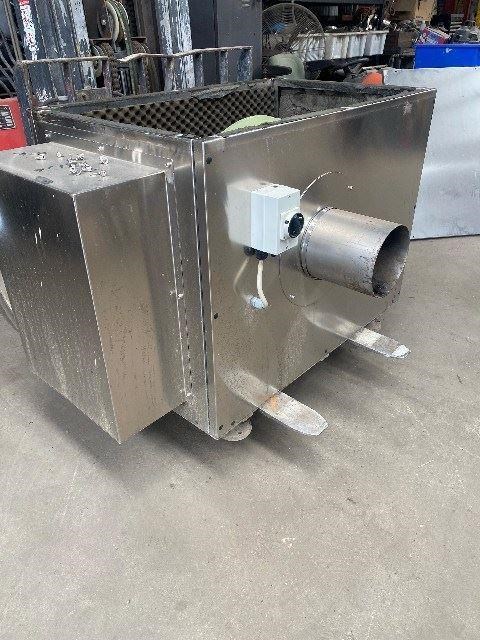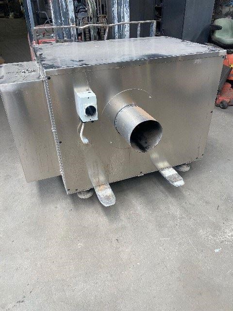 Vacuum Conveyor Fan with Stainless Enclosure. 220mm Suction Inlet. Flow rate 25-80 m3 /min Pressure 460-305 kgf/m2. 5.5kw 2880rpm 415v 50/60hz. Fan Cimme Italy. Unit supplied by Lanfranchi Italy.