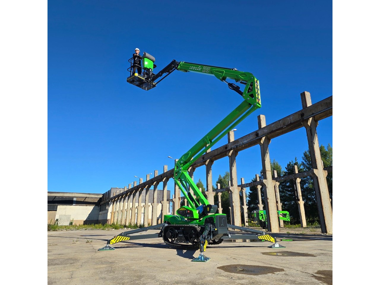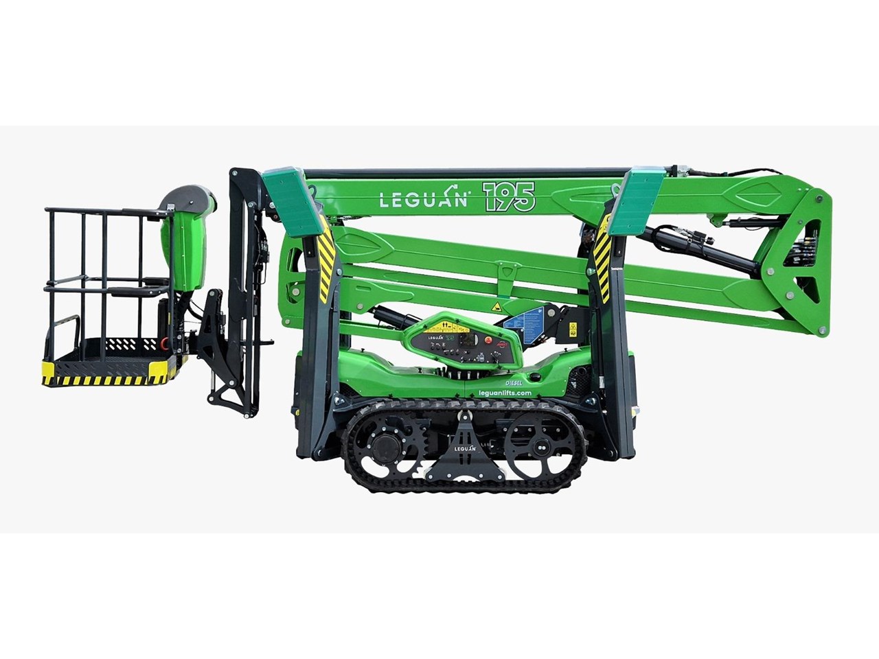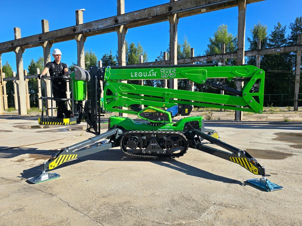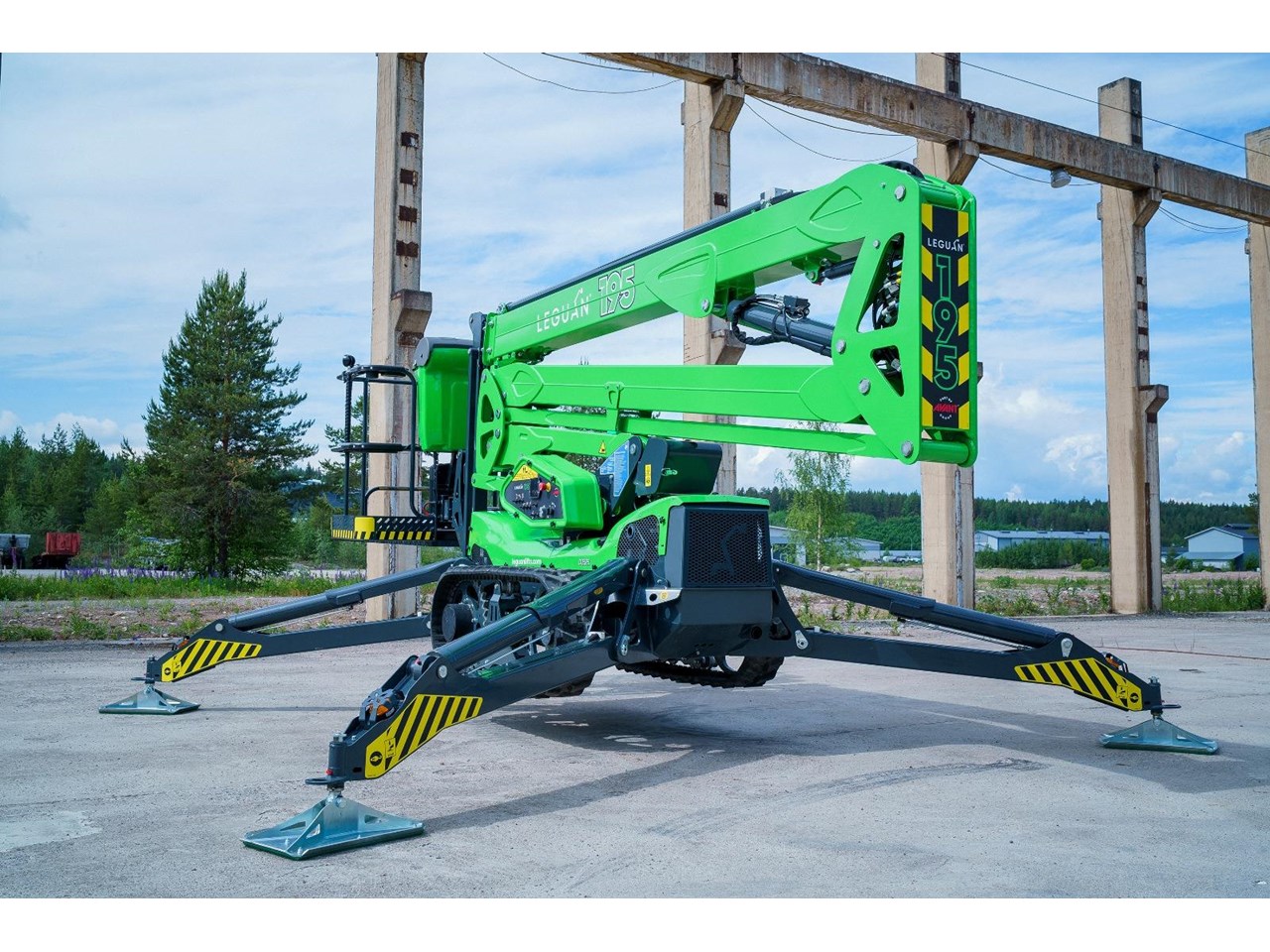 Introducing the next generation in spider lift technology, the Leguan 195 redefines excellence with its unmatched all-terrain capabilities, robust track platform, and impressive driving speeds. Designed to conquer the toughest environments, the 195's advanced boom design delivers maximum side reach even at greater heights, while the cutting-edge joystick control guarantees seamless, precise and safe movements.