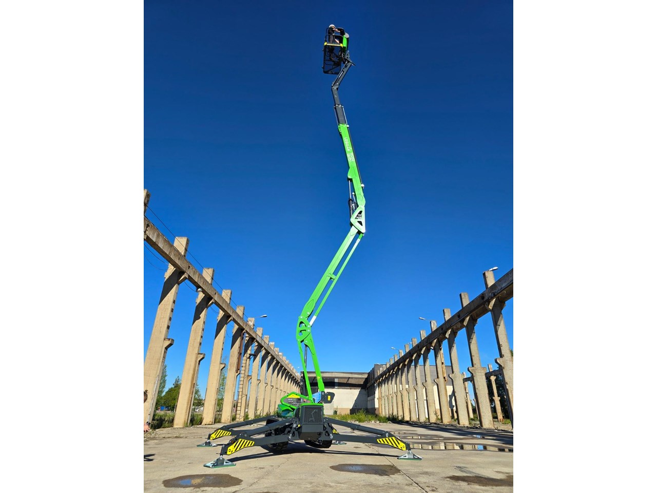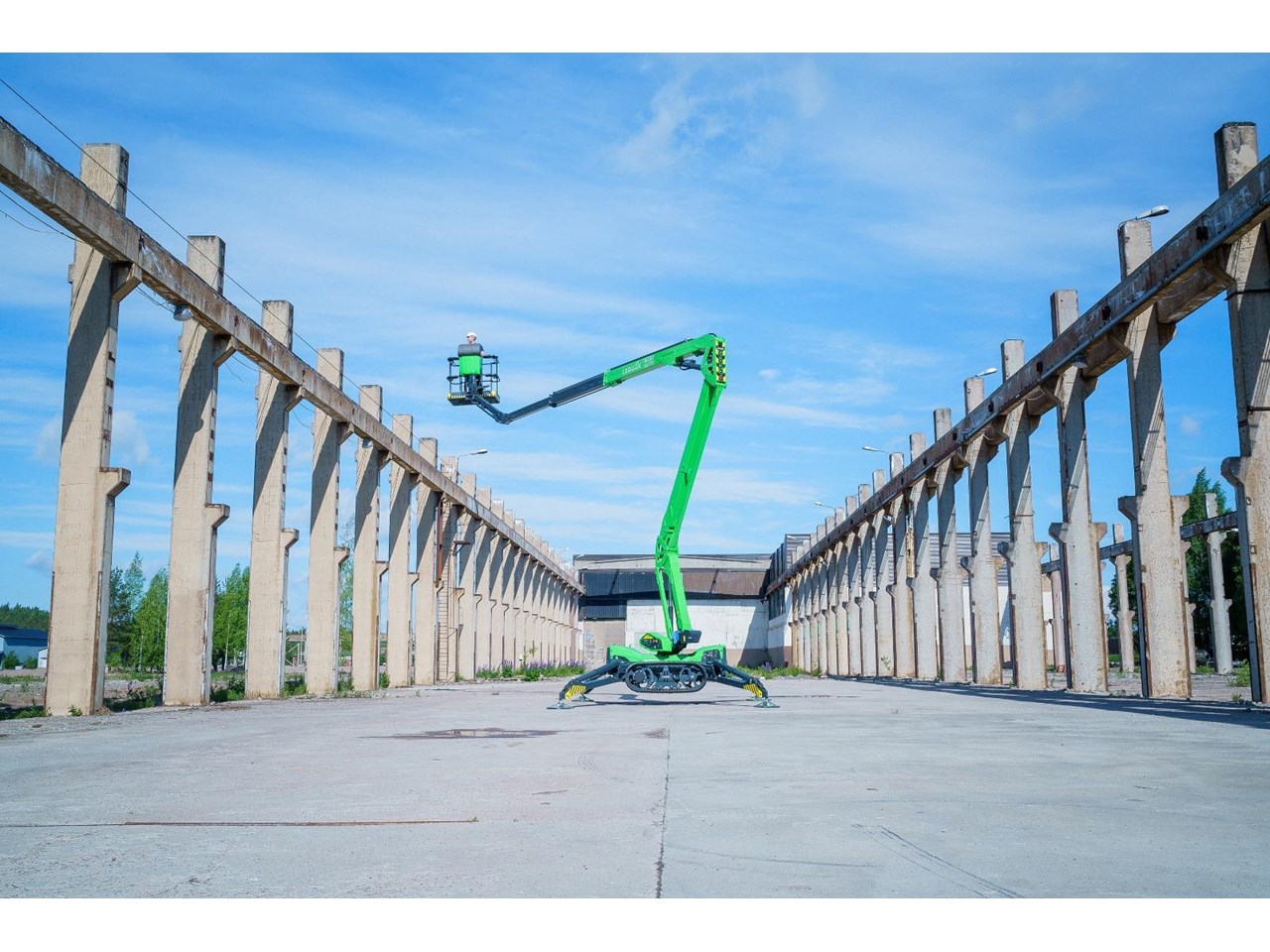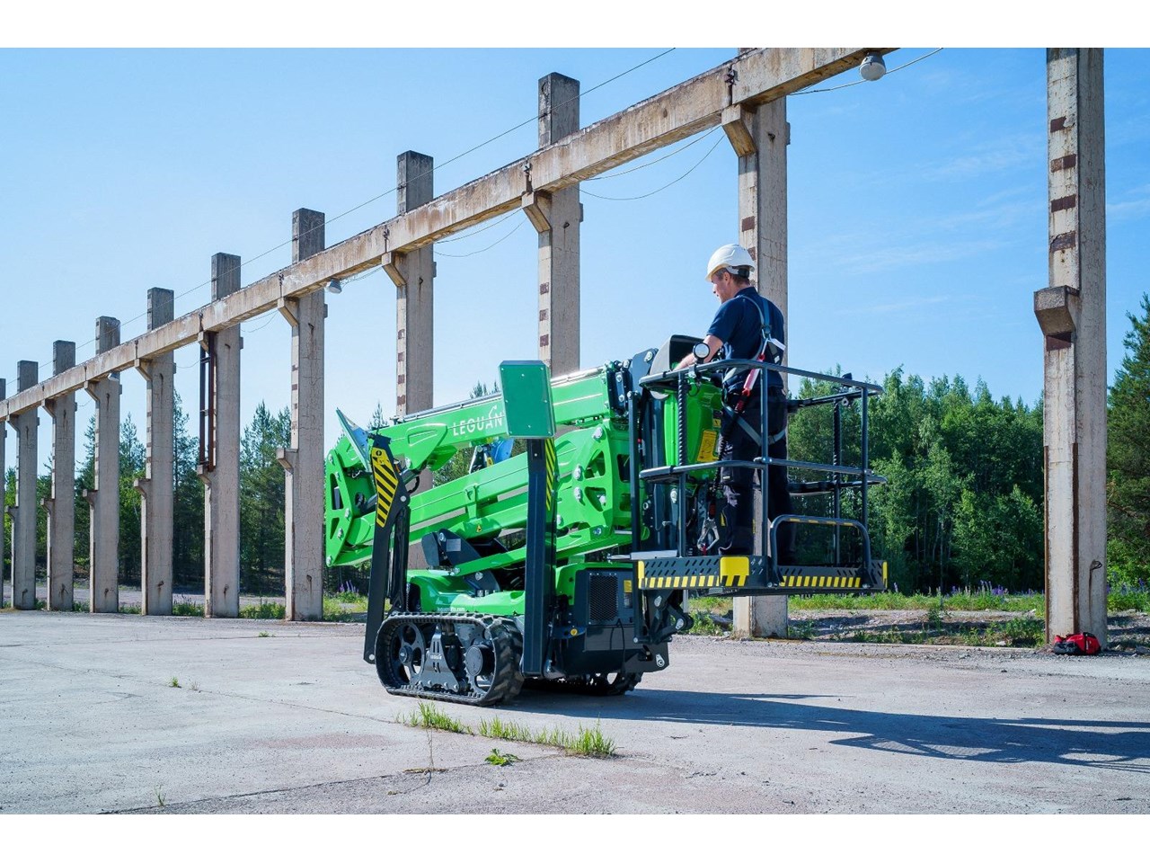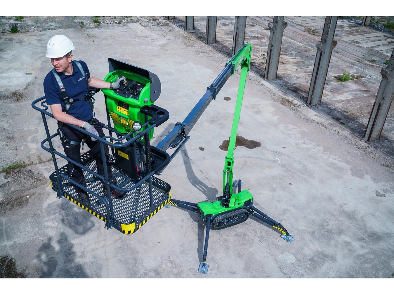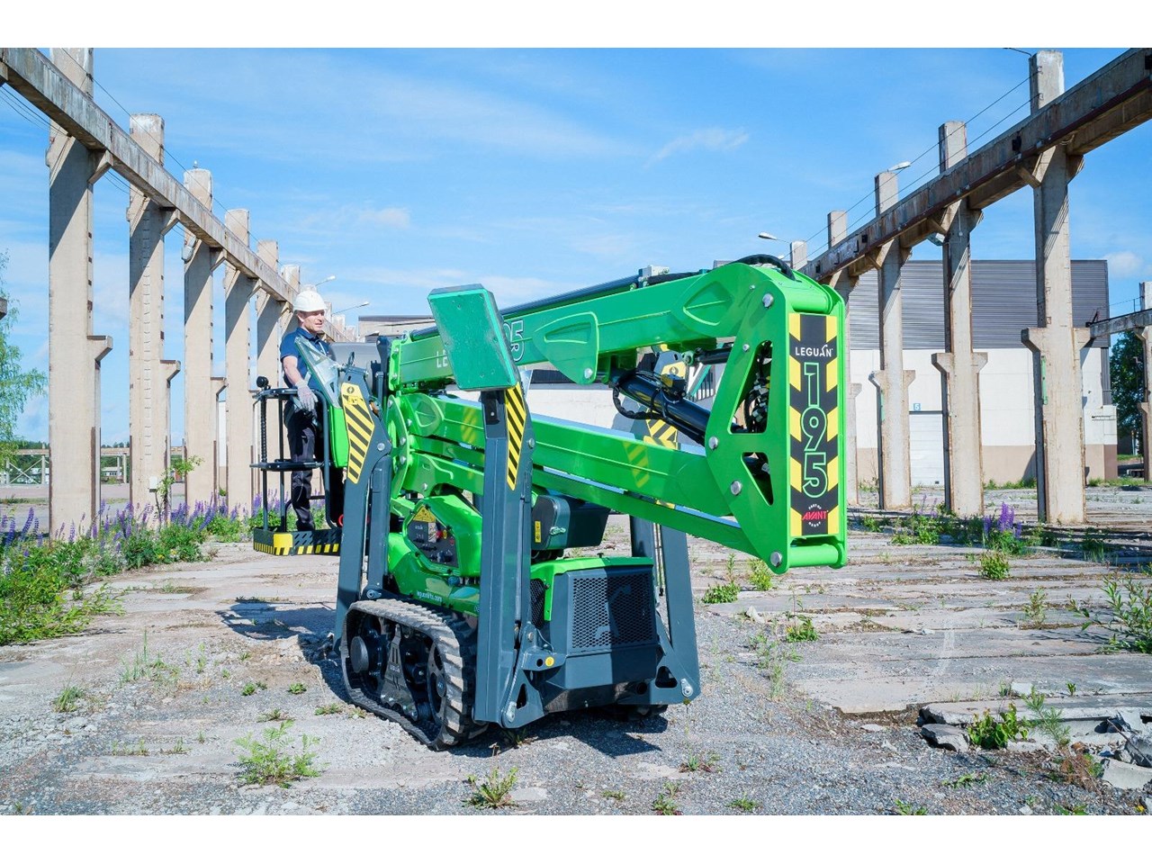 Introducing the next generation in spider lift technology, the Leguan 195 redefines excellence with its unmatched all-terrain capabilities, robust track platform, and impressive driving speeds. Designed to conquer the toughest environments, the 195's advanced boom design delivers maximum side reach even at greater heights, while the cutting-edge joystick control guarantees seamless, precise and safe movements.