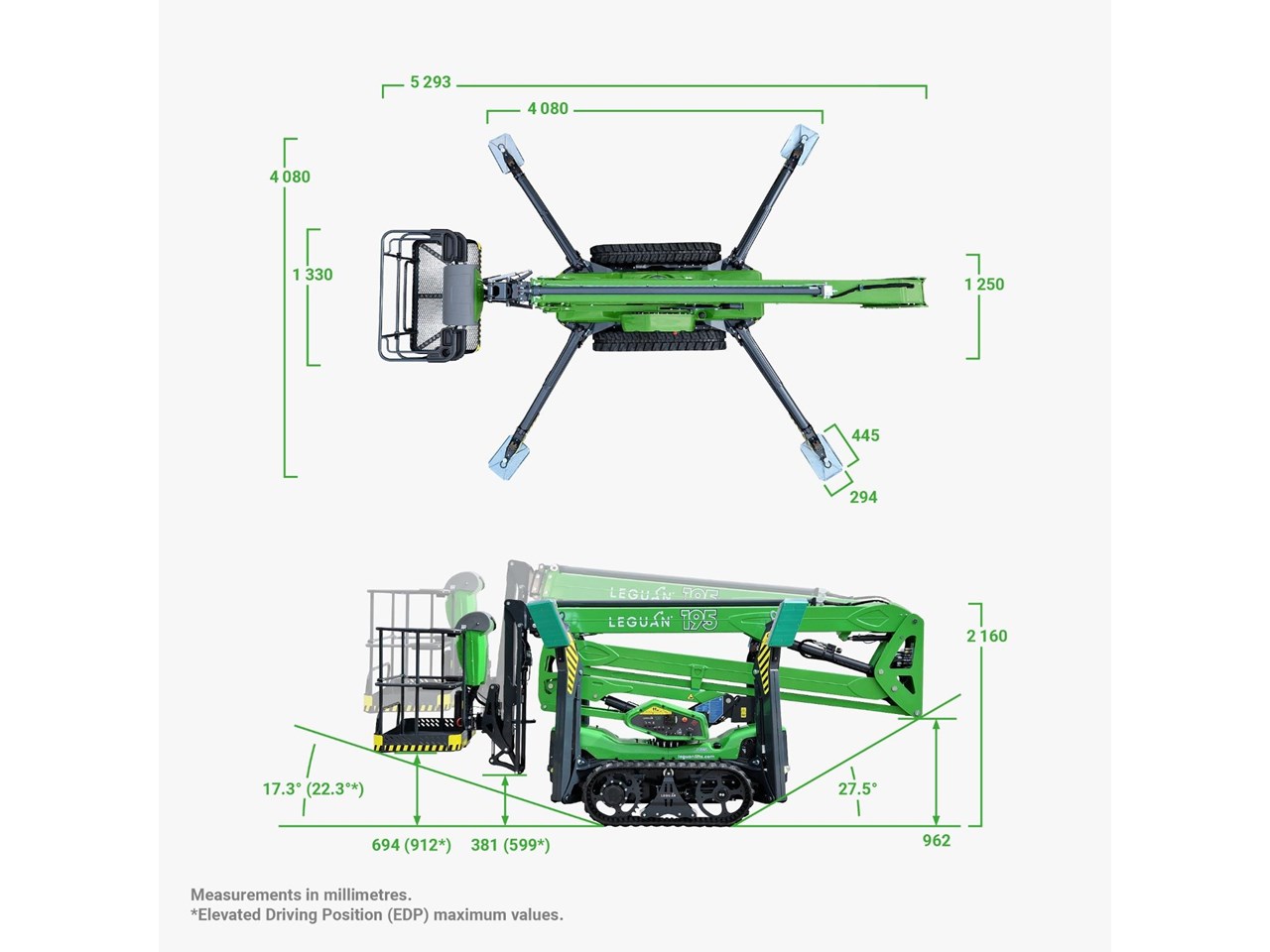 | Model | LEGUAN 195 - 19.7M SPIDER LIFT | 9.9M HORIZONTAL OUTREACH | 250KG MRC | JOYSTICK CONTROLS |