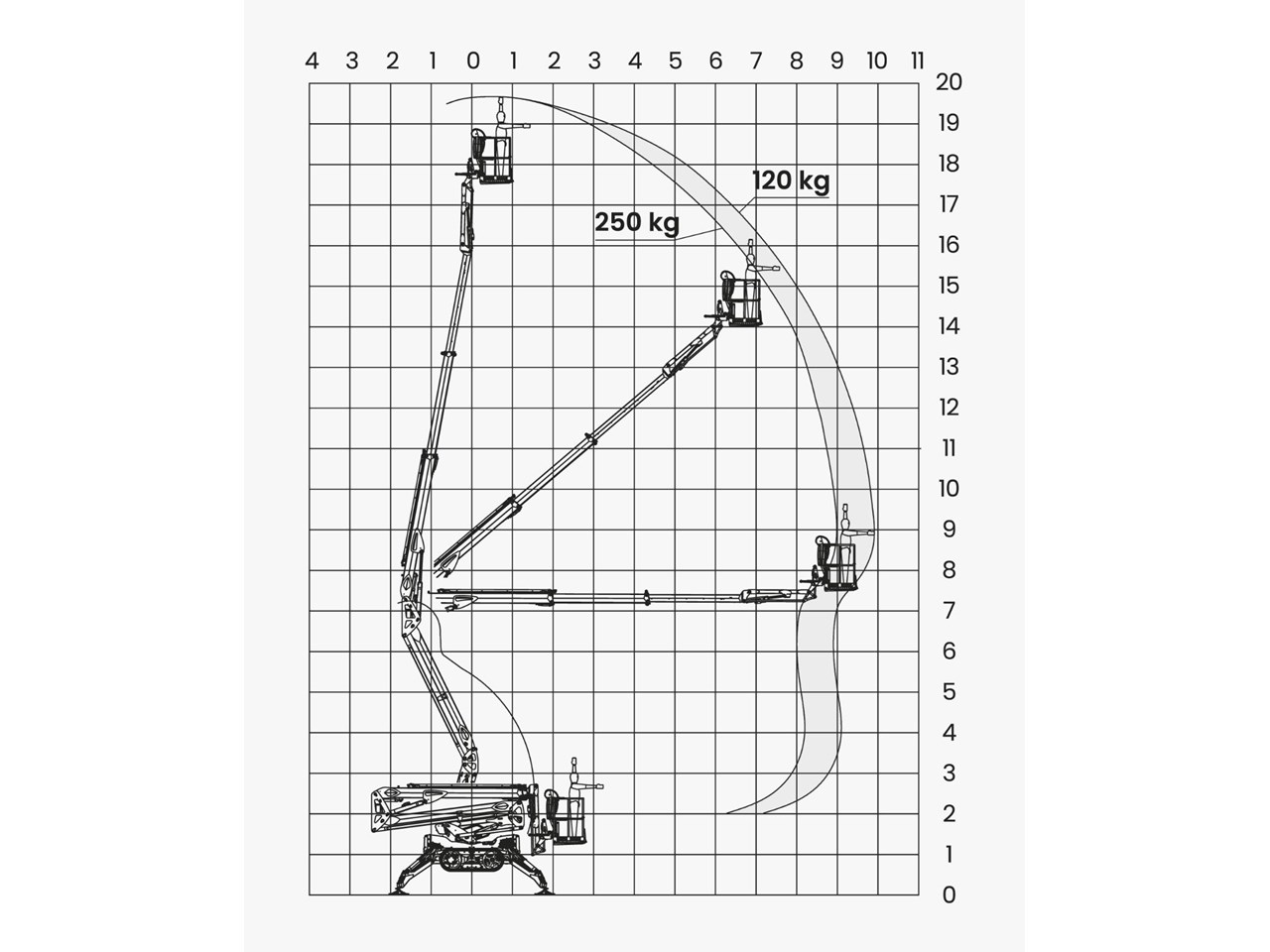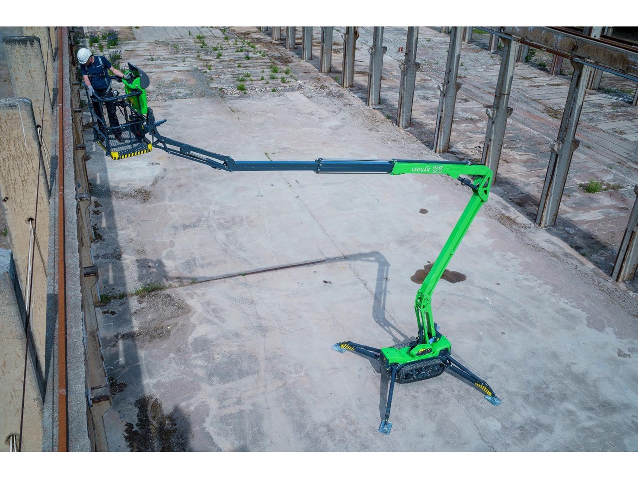 The Leguan 195 offers an impressive side reach of 9.9 meters and an up-and-over reach of over 7 meters. Even more remarkable is its ability to maintain a side reach of up to 9 meters with a maximum workload of 250 kg. Combined with the market's fastest boom movements, the Leguan 195 delivers unrivaled efficiency for working at height.