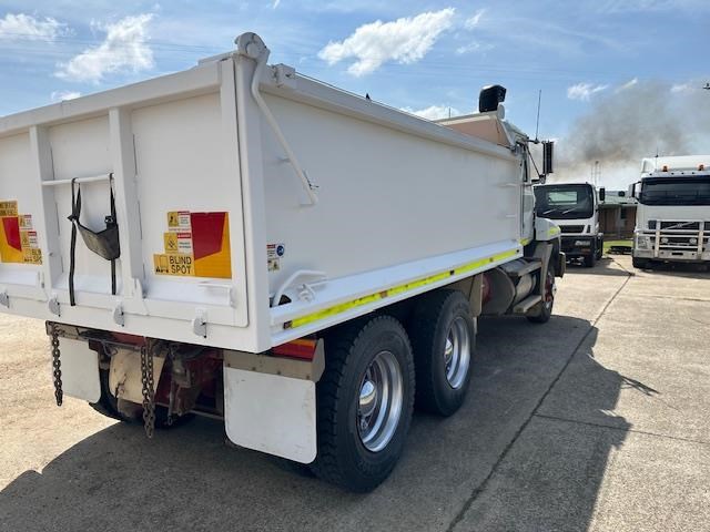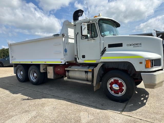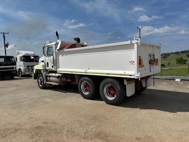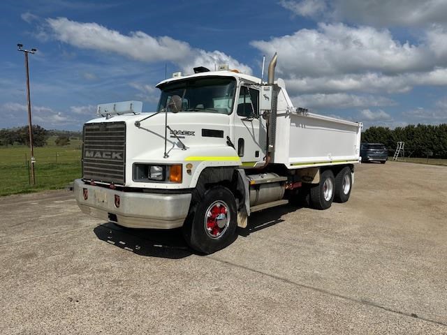 11/2003 Mack CH bogie drive tip truck with 4.5 meter long steel bisaloy bin, wind out tarp, 2 way gate and Bartlett ball for towing. Fitted with a Mack 470 HP motor 18 speed road ranger gearbox and Hendrickson air bag suspension with 44000 lb diffs with cross locks.