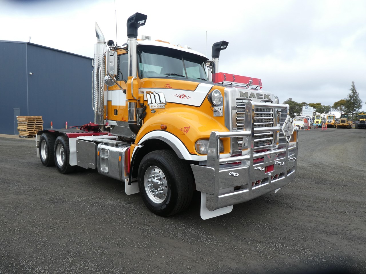 2017 MACK SUPERLINER DAY CAB PRIME MOVER, 685HP MP10, 135 TON RATED, M-DRIVE AUTO, DIFF LOCK, CROSS LOCK, AUTO GREASER, MERITOR DIFFS, AIRBAG SUSPENSION.