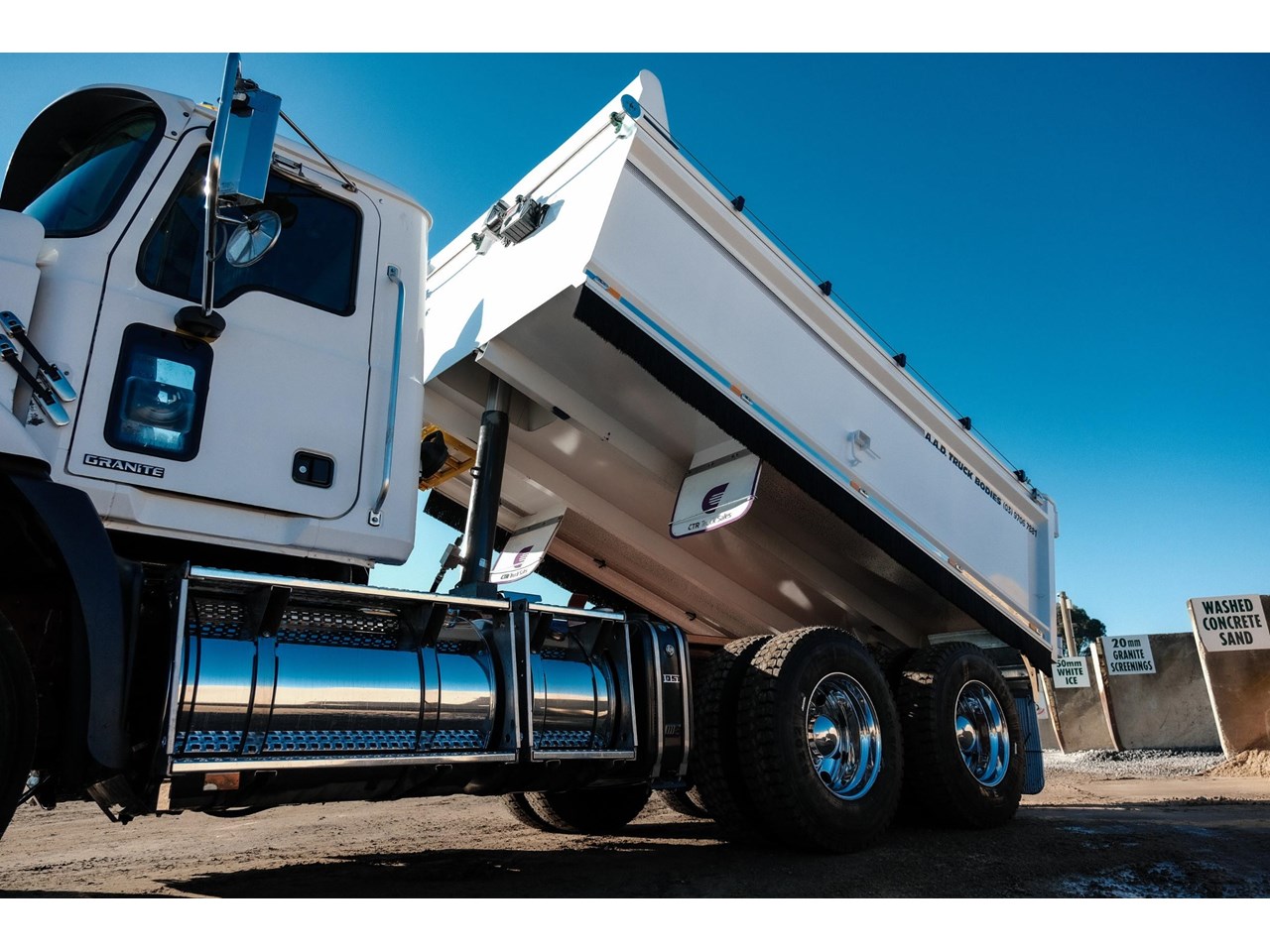 MP8 @ HP 435, Auto Transmission, Brand new 4.3m AA-Diesel Tipper, 3 way tailgate, New Tyres, Razor electric tarp, Alloy bumper, Alloy Rims & Isolator switch. Your option with Ring Feeder, Ballrace, Bartlett Ect. Comes with VIC RWC.