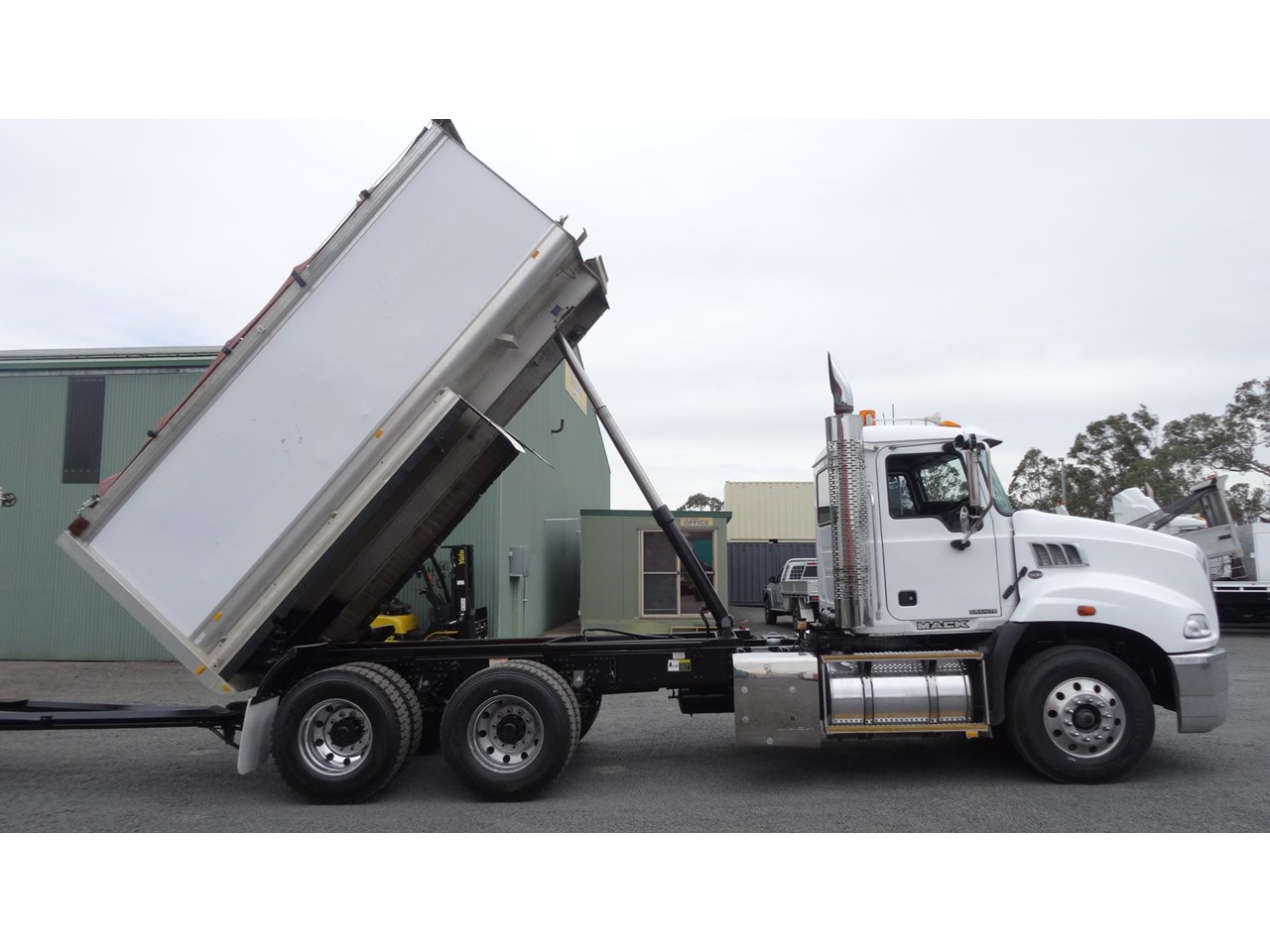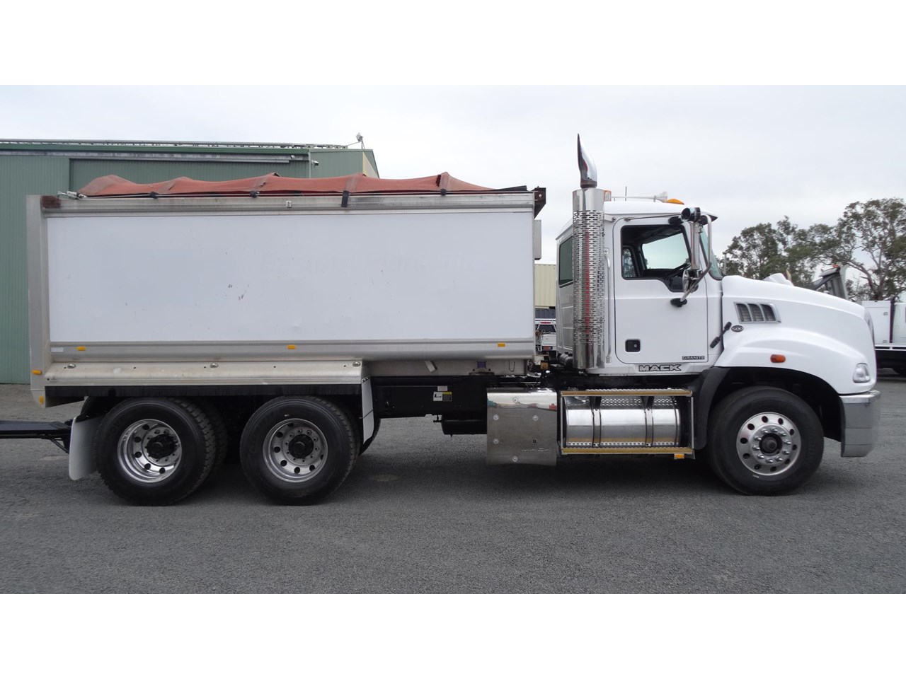 MACK GRANITE 6X4 ALLOY TIPPER, YEAR-10/2012, LOW 720,200KMS AND 18070HRS, 500HP TURBO INTERCOOLED MP8 ENGINE, 18 SPEED MANUAL EATON GEARBOX, 26000 GVM, 50000 GCM, 5.06M LONG WHEELBASE, 10 STUD ALLOY WHEELS, BORCAT ALLOY TIPPER-4575MM LONG X 2320MM WIDE X 1500 MM HIGH, AIR TAILGATE WITH WELL TYPE HOIST, AIRBAG REAR SUSPENSION, ELECTRIC RETRACTABLE SHADE TARP, ELECTRIC SCALES, AIR OPERATED RINGFEEDER, TRAILER CONTROLS, DISC BRAKES, S/N-2246. PRICE $89900.00 LOCATED IN ARMIDALE NSW.