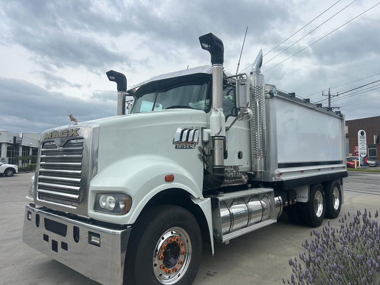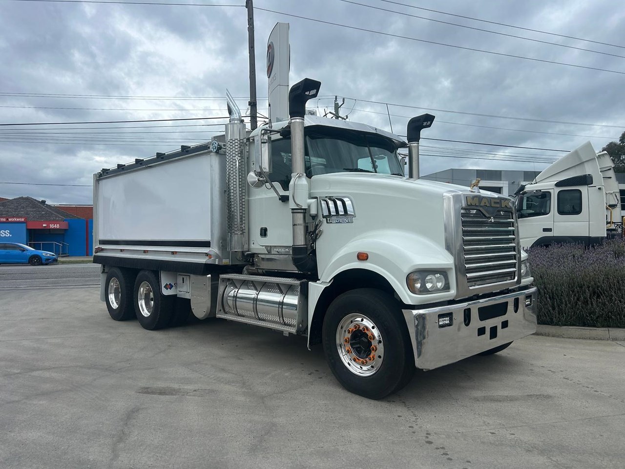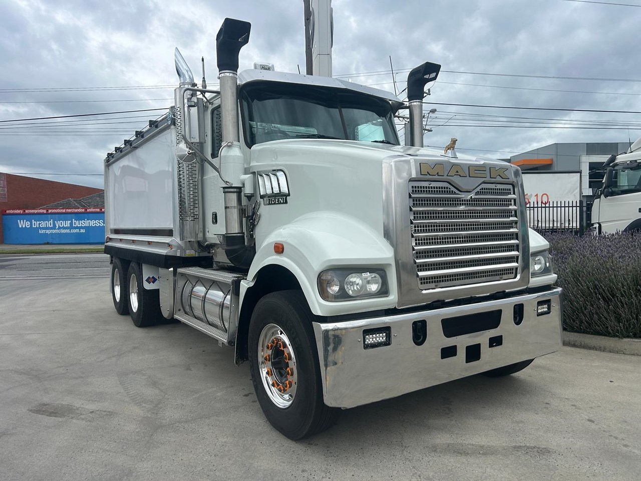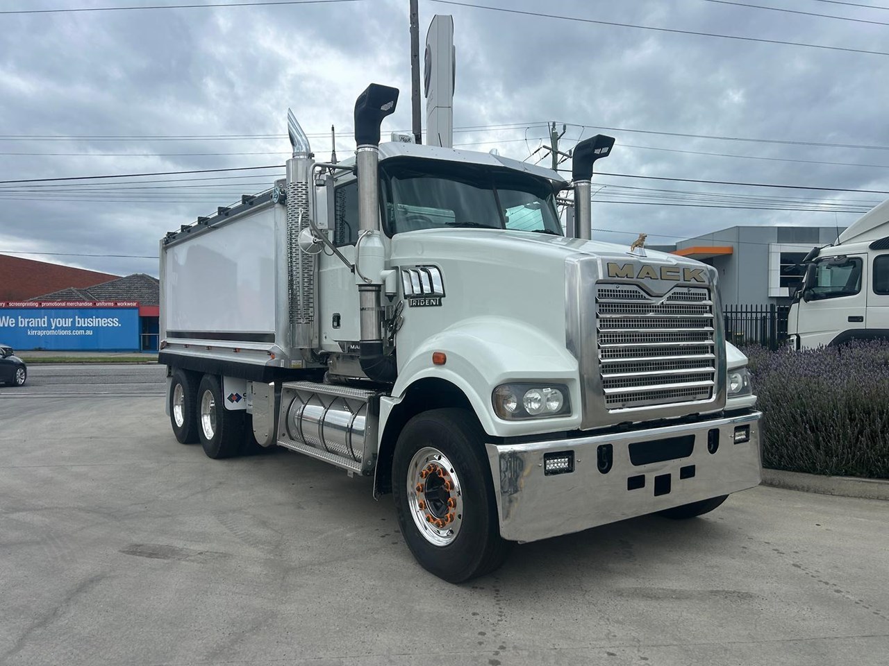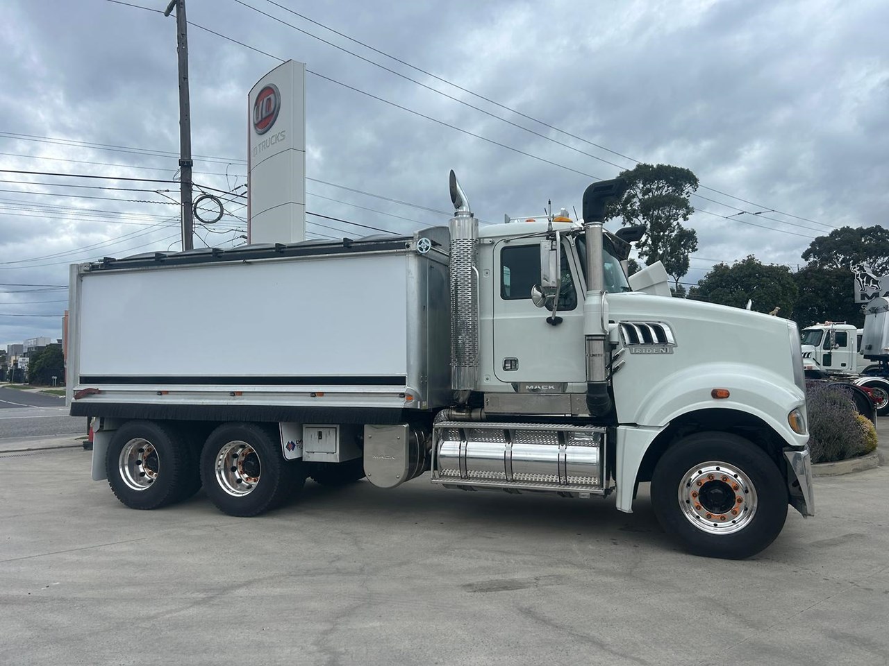 661,000 KMS MACK TRIDENT 6X4 ALLOY TIPPER, One owner Truck, Mack MP8 535HP, Mack 12 speed M-DRIVE Transmission, Airbag suspension, Diff locks, Alloy wheels, Offsets on steer, Dual alloy tanks, New tyres, High Rise air intakes, Hercules alloy body with remote electric tarp, ring feeder tow connection, Rwc Ready, CMV 3-Month drive line warranty applies.
