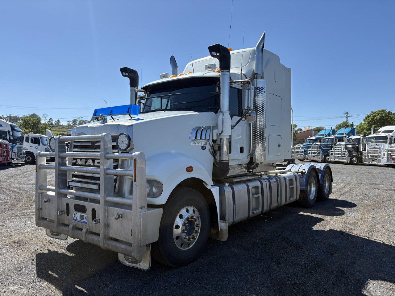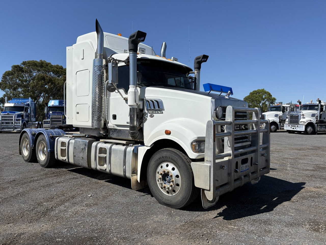 2011 Mack Trident, Mack MP8 Engine, 1,153,484Kms, 12 Speed M Drive Transmission, NeWay Airbag Suspension, Meritor 50-160 Diffs, 52 inch Sleeper, Plastic Drive Guards, 50mm Jost Turntable, Alloy Bullbar, 2x LED Spotlight, Roof Mount Revolving Light, End Tipper Hydraulics, Chassis Walk Plate, 10,300kg Tare, 26,000Kg GVM, 131,000Kg GCM.