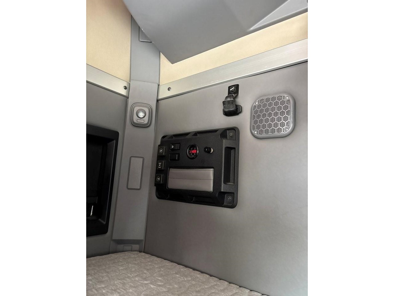 - Current version dash & cabin tech with high visibility display, Spacious 36" walk-through high rise sleeper with stand-up height cabin