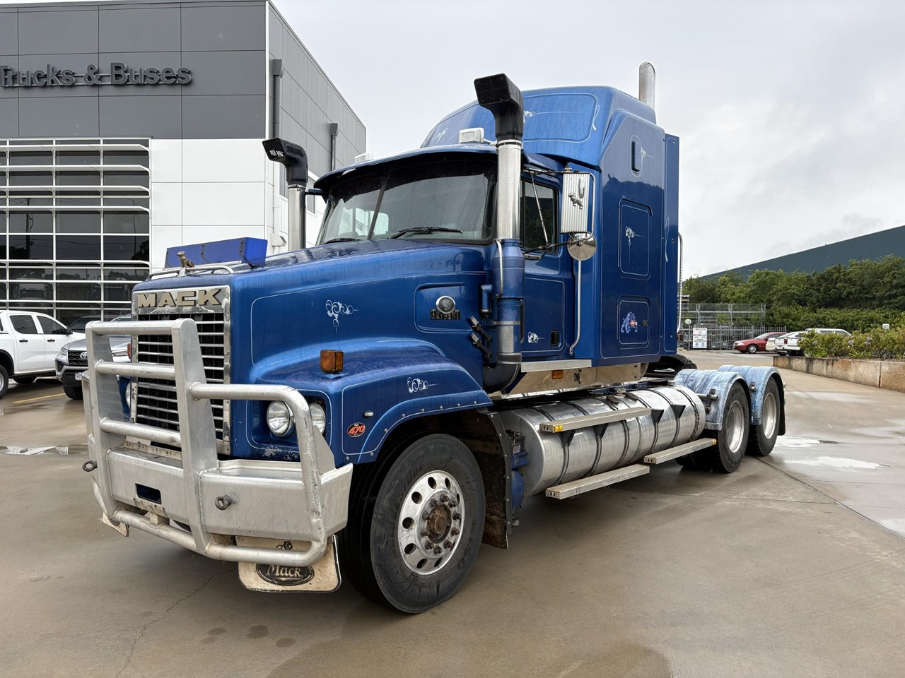 2000 Mack Trident, Mack CCRS Engine at 470hp, 1,661,640Kms, 28,128Hrs, 18 Speed Mack Transmission, Hendrickson Airbag Suspension, Mack Diffs, 40 inch Sleeper, Plastic Drive Guards, 50mm D'Angelo Turntable, Alloy Bullbar, End Tipper Hydraulics With A Return Line, Chassis Walk Plate, 26,000Kg GVM, 70,000Kg GCM.