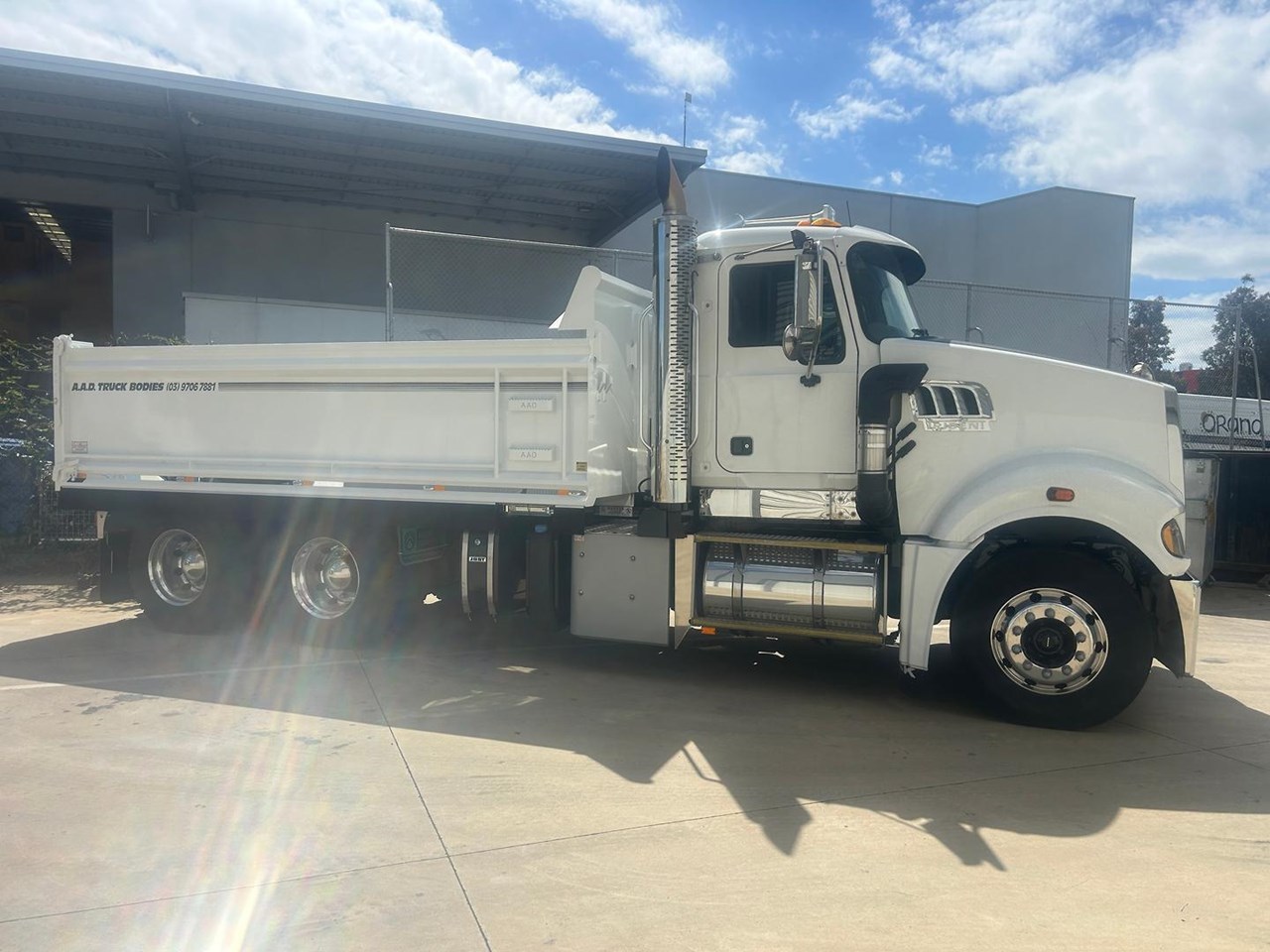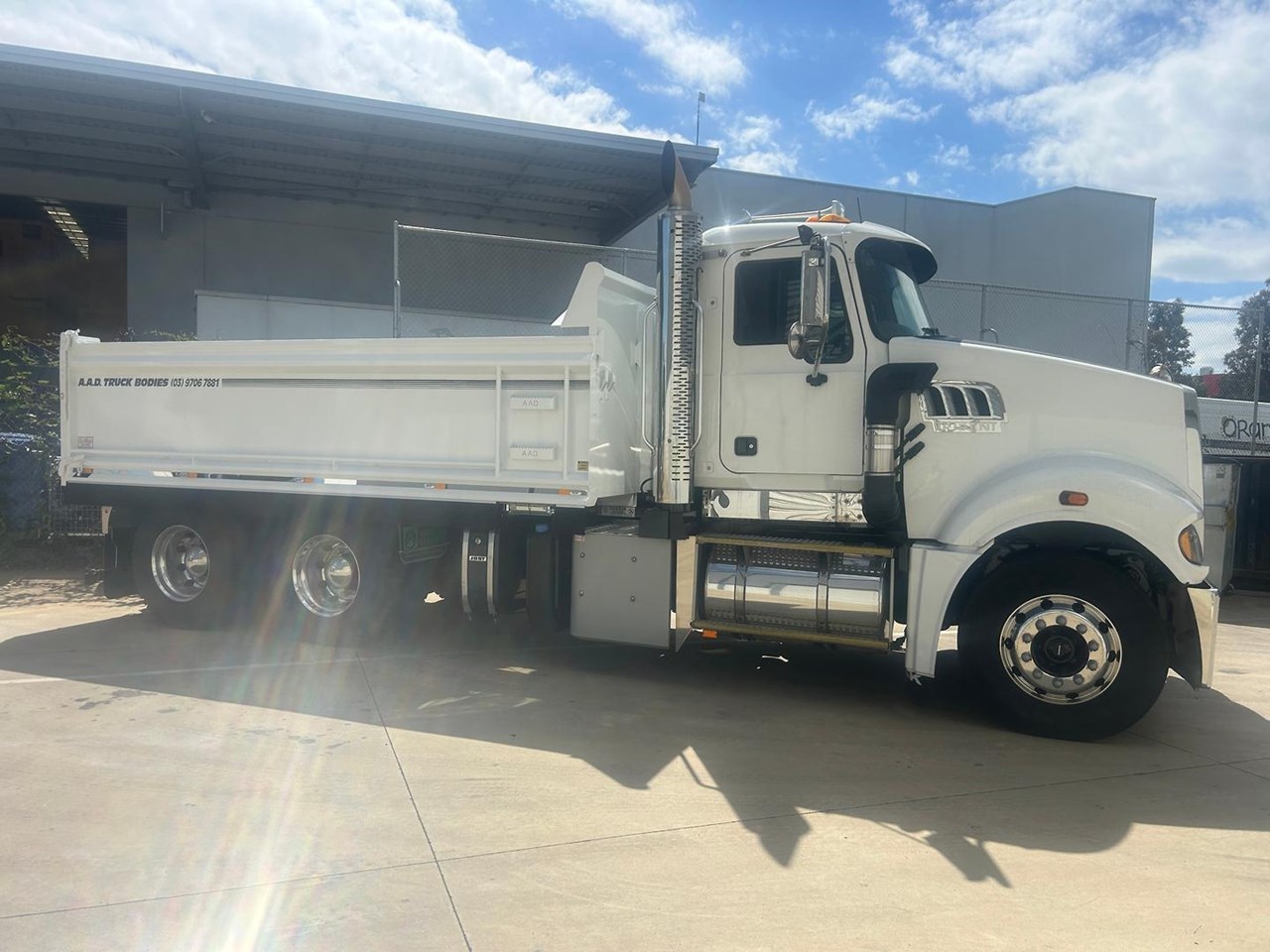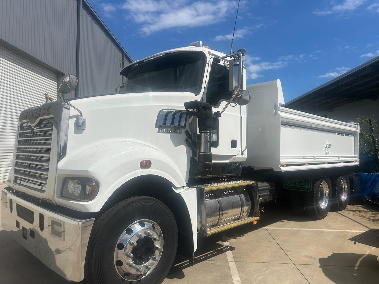 2020 MACK TRIDENT 6X4 DAY CAB TIPPER , Mack MP8 535HP, Mack 12 Speed M-Drive transmission, Airbag suspension, Disc brakes, Alloy wheels, Dual alloy tanks, NEW 450 grade tipping body 4600 long with front mount hoist, Rear cross member with trailer connections and tow hitch ready, Remote tarp.