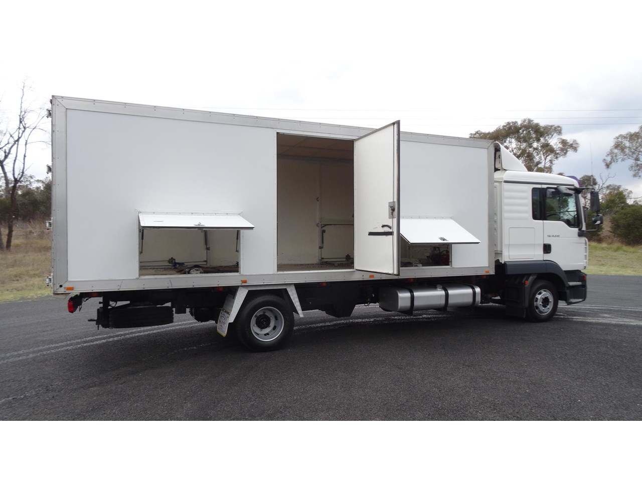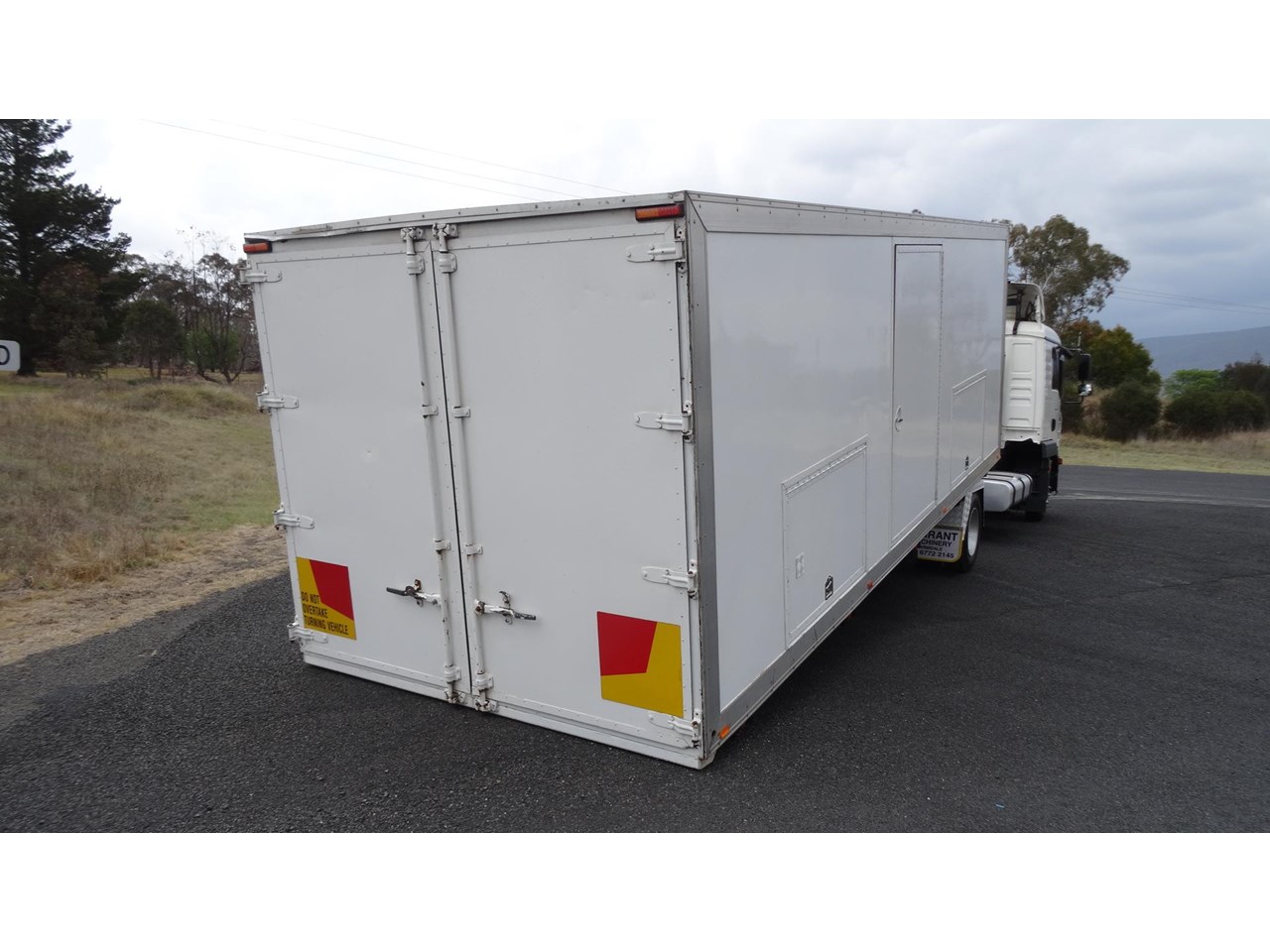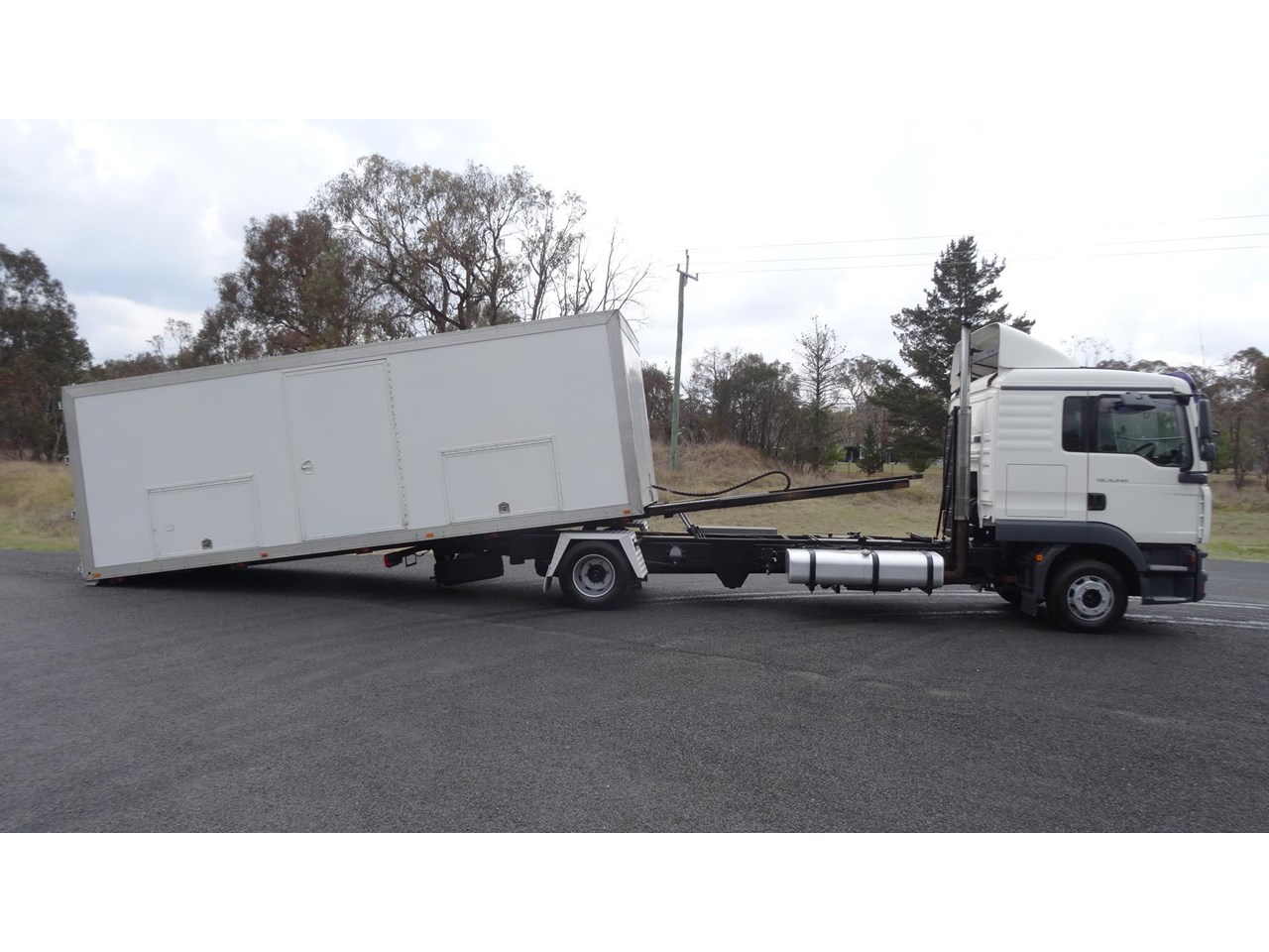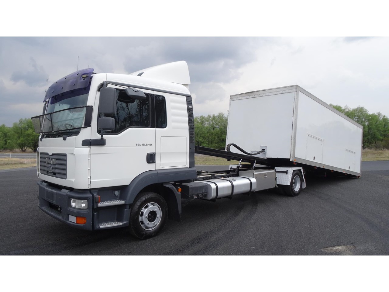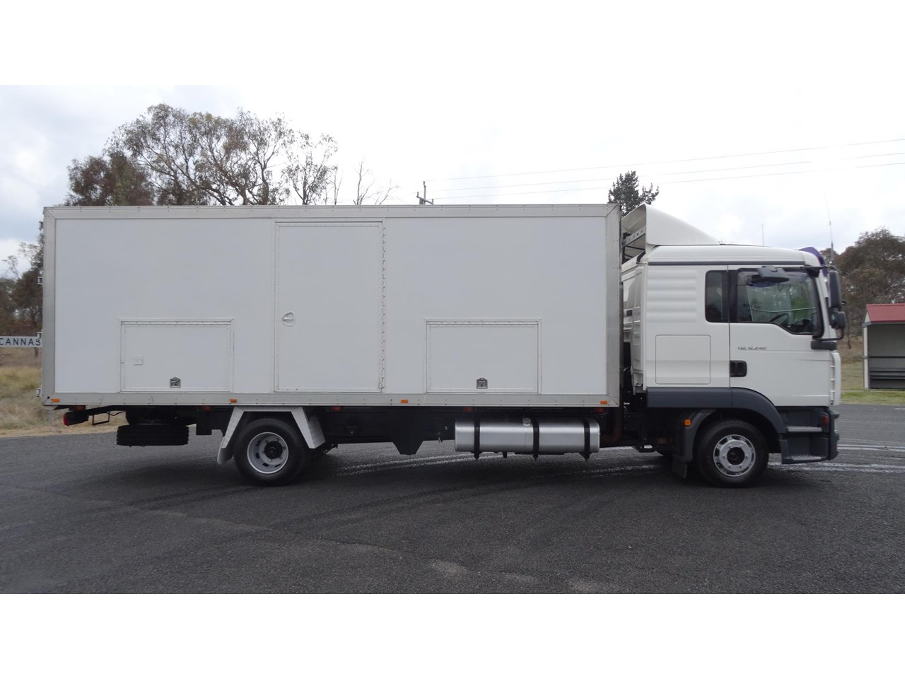 MAN TGL 12.240 TILT SLIDE WITH INCLOSED PAN , YEAR - 01/2007, LOW 267300 KMS, 240 HP TURBO INTERCOOLED, ZF AUTOMATIC WITH NO CLUTCH, GOOD SIZE SLEEPER IN CAB, EKEBOL BRAND BODY WITH FULL REMOTES, 11990 GVM, 16480 GCM, 5200MM WHEELBASE, 6300 MM L X 2350MM W X 2000MM H INSIDE MEASUREMENTS, HYDRUALIC WINCH FITTED INSIDE PAN, , 4 AIRBAG SUSPENSION, DUAL FUEL TANKS, REAR TOWBAR FITTED, TRUCK DRIVES LIKE A CAR AND GOES VERY WELL, S/N - 2262, PRICE - $119,900.00 INC GST, LOCATED IN ARMIDALE NSW