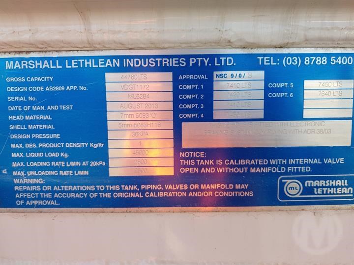 | Title | 2013 MARSHALL LETHLEAN 44,770L |
