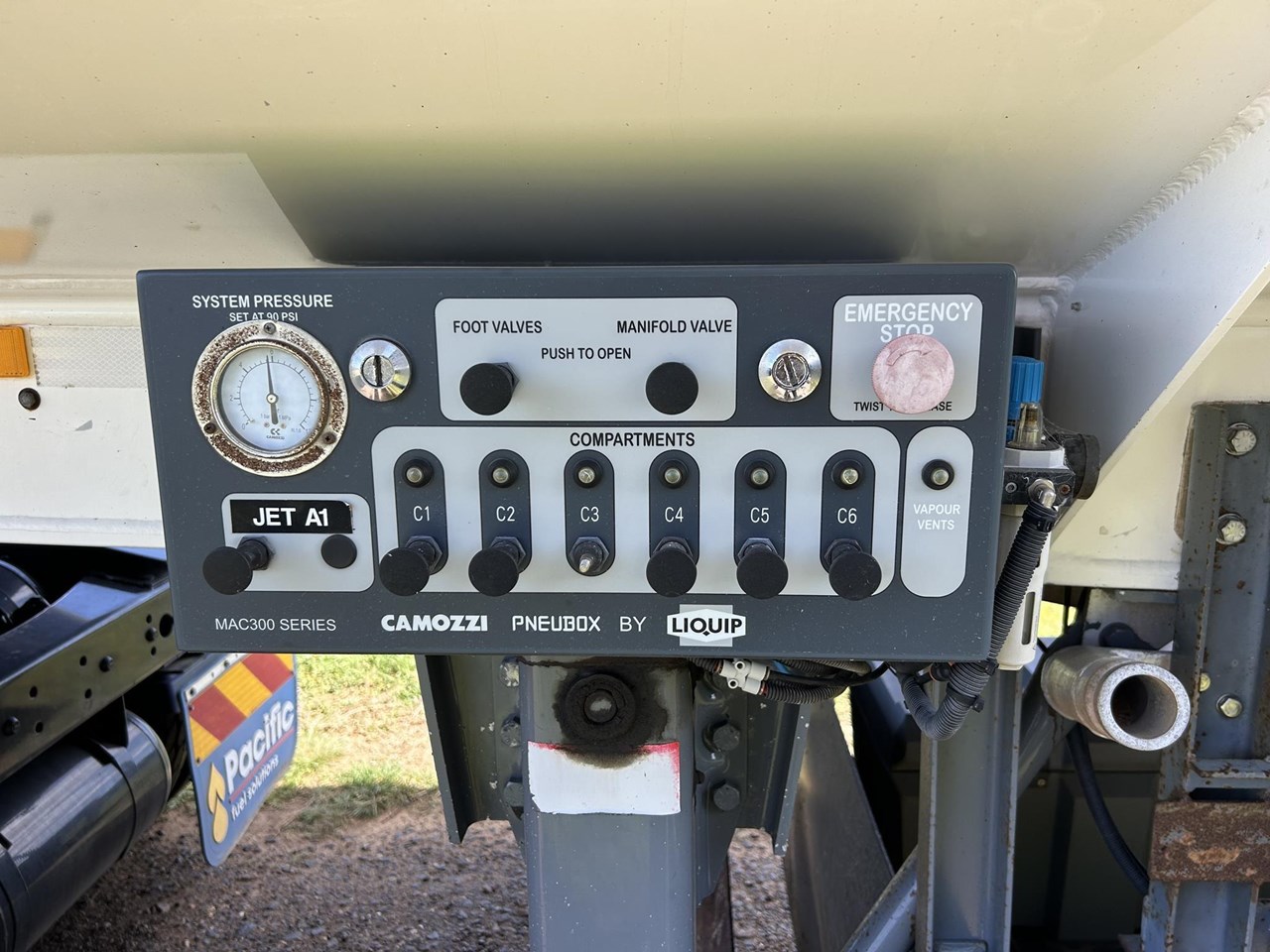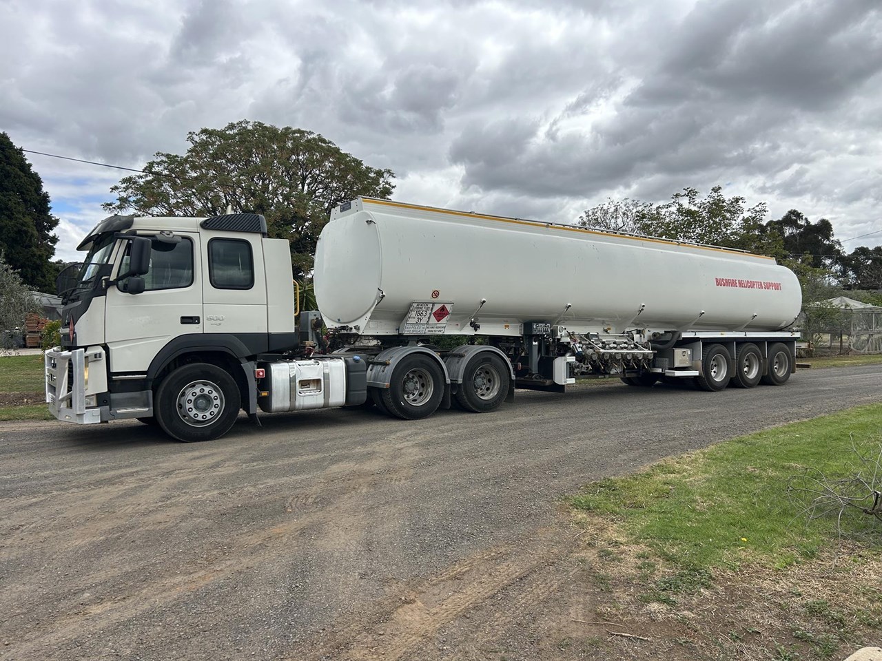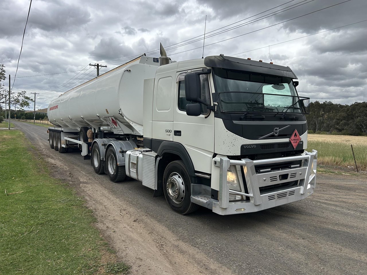 Volvo 2015 build FM 500 fuel haul kit and tanker hydraulics. 642210 ks 16514 hours , D13 500 hp I Shift auto , Meritor diffs on Volvo airbag suspension , diff locks cross locks , 70T GCM . 2011 build 45000 litre 6 compartment Aviation Turbine Fuel Tanker with pumping gear meter stainless piping and filtration . October 2025 hydro , BPW Eco Plus axles with EBS brakes on airbag suspension . Excellent rubber and running gear . Safety rails and wind down legs .