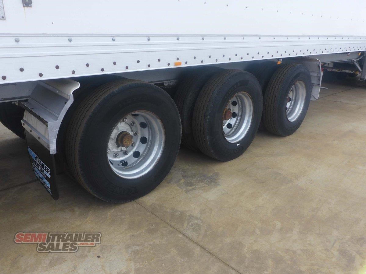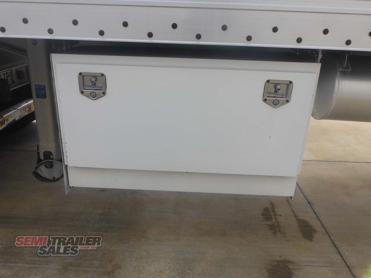 <p>Trailer B<br>-Tri Axle (BPW)<br>-Airbag Suspension (BPW)<br>-10 Stud Rims<br>-11R22.5 Wheels & Tyres<br>-Twin Position Bolt In King Pin<br>-Jost Landing Legs<br>-Toolbox<br>-Spare Tyre Carrier<br>-Water Barrel<br>-BPW Front Lift Axle<br>-Side Access Door<br>-Rear Barn Doors<br>-Steel Chequer Plate Floor<br>-LED Lights</p>