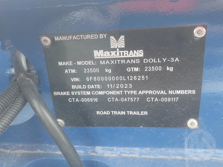 Build Year: 2023 Make: Maxitrans Model: Dolly Body Type: Dolly