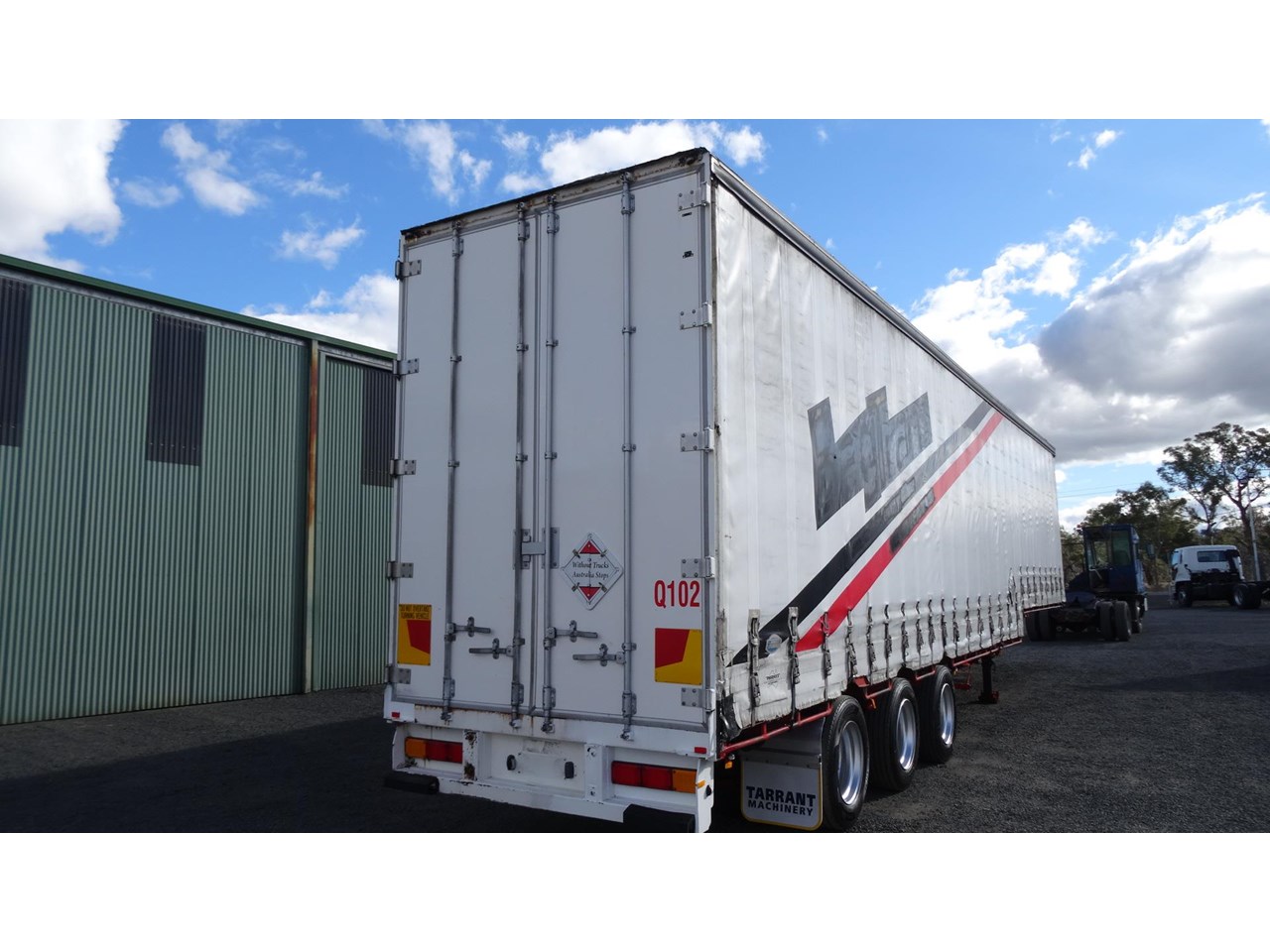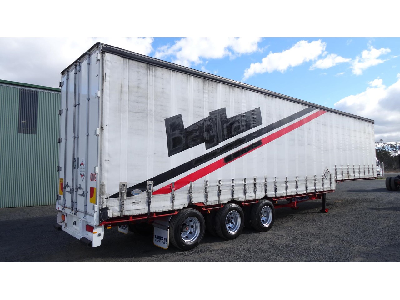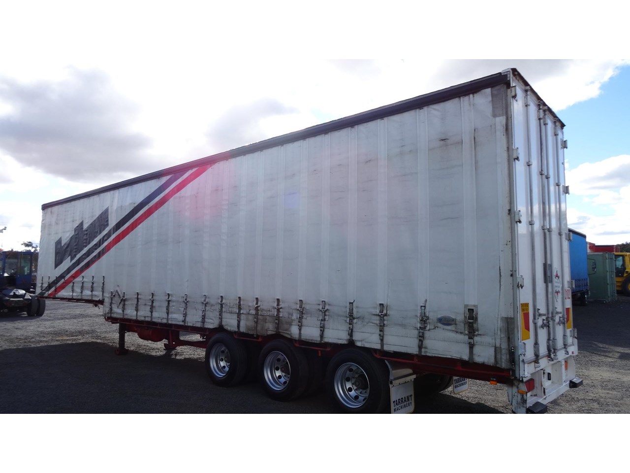 MAXITRANS 24 PALLET 48FT DROPDECK CURTAINSIDER, YEAR - 11/1999, 35T ATM, ROAD TRAIN RATED TRAILER, DROP DECK CURTAINSIDER WITH REAR BARN DOORS + SINGLE MEZZ DECK IN THE MIDDLE OF THE TRAILER, FULL SET OF GATES, STEEL CHECKER PLATE FLOOR, 10 STUD STEEL RIMS RUNNING 275/70R 22.5 TYRES, AIRBAG SUSPENSION, FROM FRONT TO KING PIN 1600MM, FROM KING PIN TO CENTRE AXLE 9500MM, FROM CENTRE AXLE TO BACK OF TRAILER 3700MM, OVERALL LENGTH 14.8M, OVERALL HEIGHT 4300MM, TOP DECK 4870MM, STEP DOWN 370MM, BOTTOM DECK 9640MM, INSIDE HEIGHT FROM BOTTOM DECK 313MM, BOLT IN KING PIN, LED LIGHTS, S/N-2227, PRICE-$38,900.00 INC GST, LOCATED IN ARMIDALE NSW
